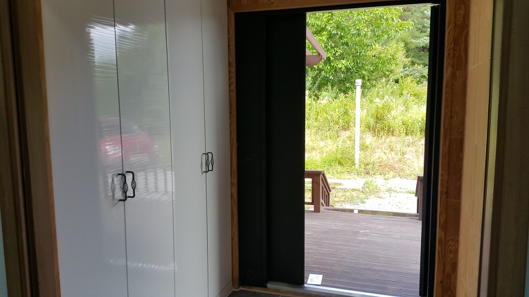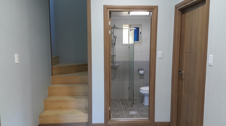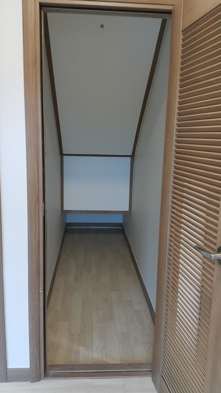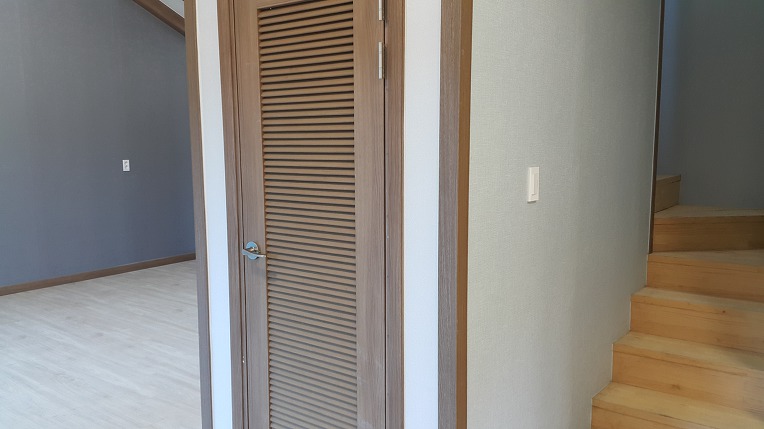2층으로 올라가는 계단 아래는 별도 수납장(실내 창고 용도)과 빗살무늬 문짝은 통풍이 잘 될듯합니다
