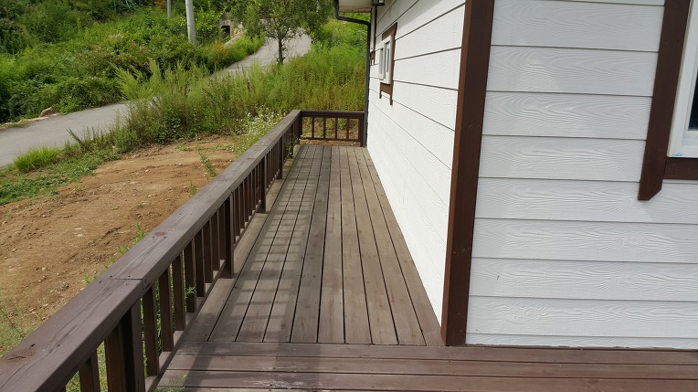 집주변 삼면( 정면 ,좌우측면 )에 데크가 시공되어 안정감을 줍니다