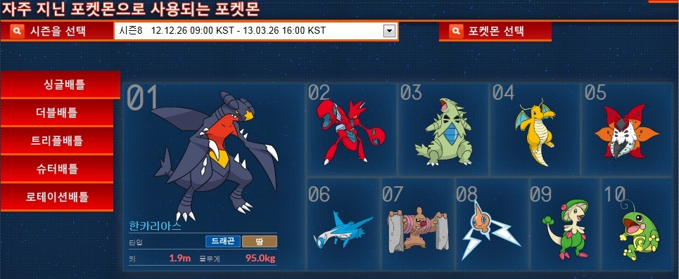 근데 와파배틀 뿐만이 아니라 넷배틀도 사용빈도가 거의 비슷비슷합니다. 심지어 이중 한카리아스는 등급이 Uber.