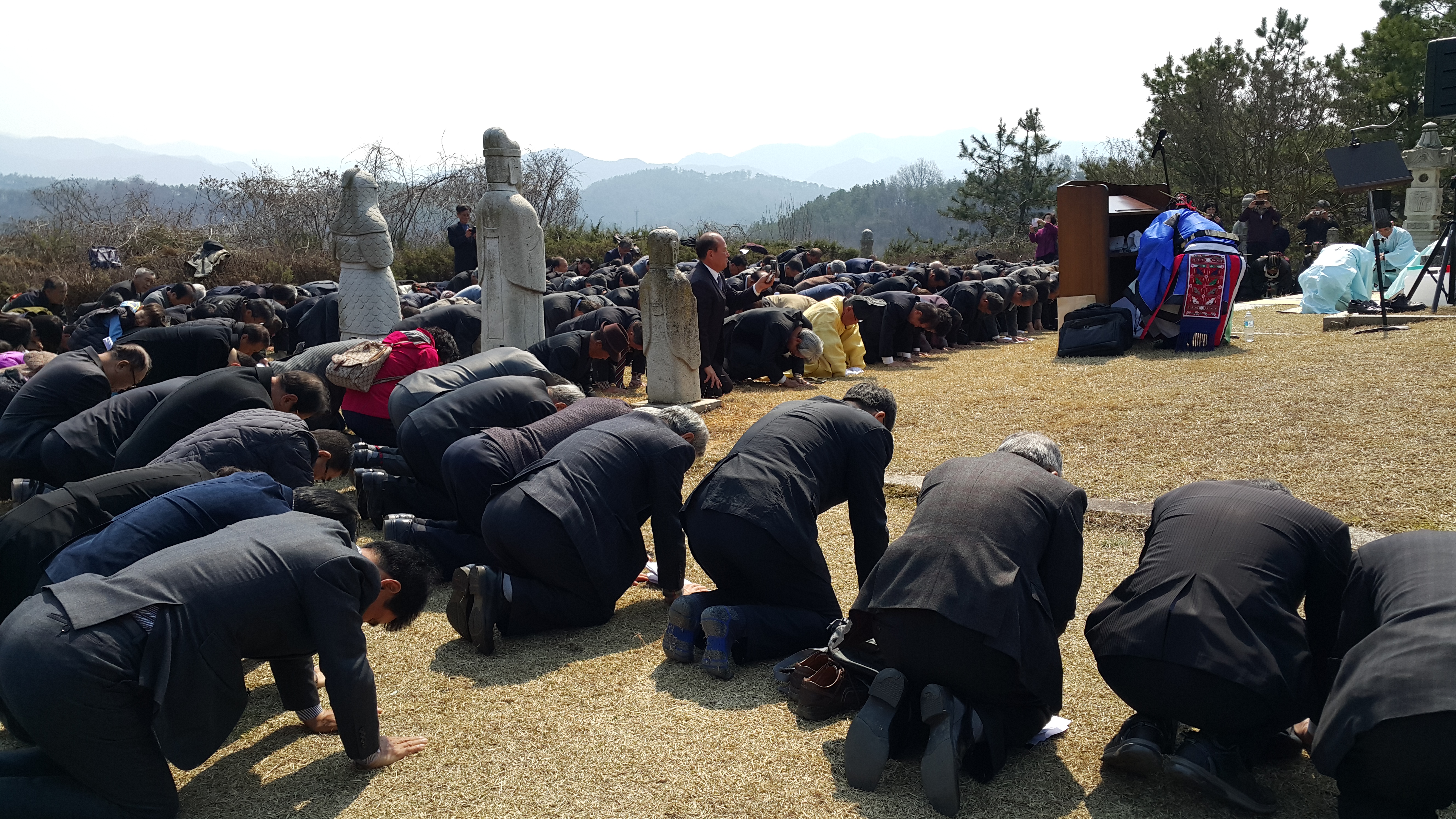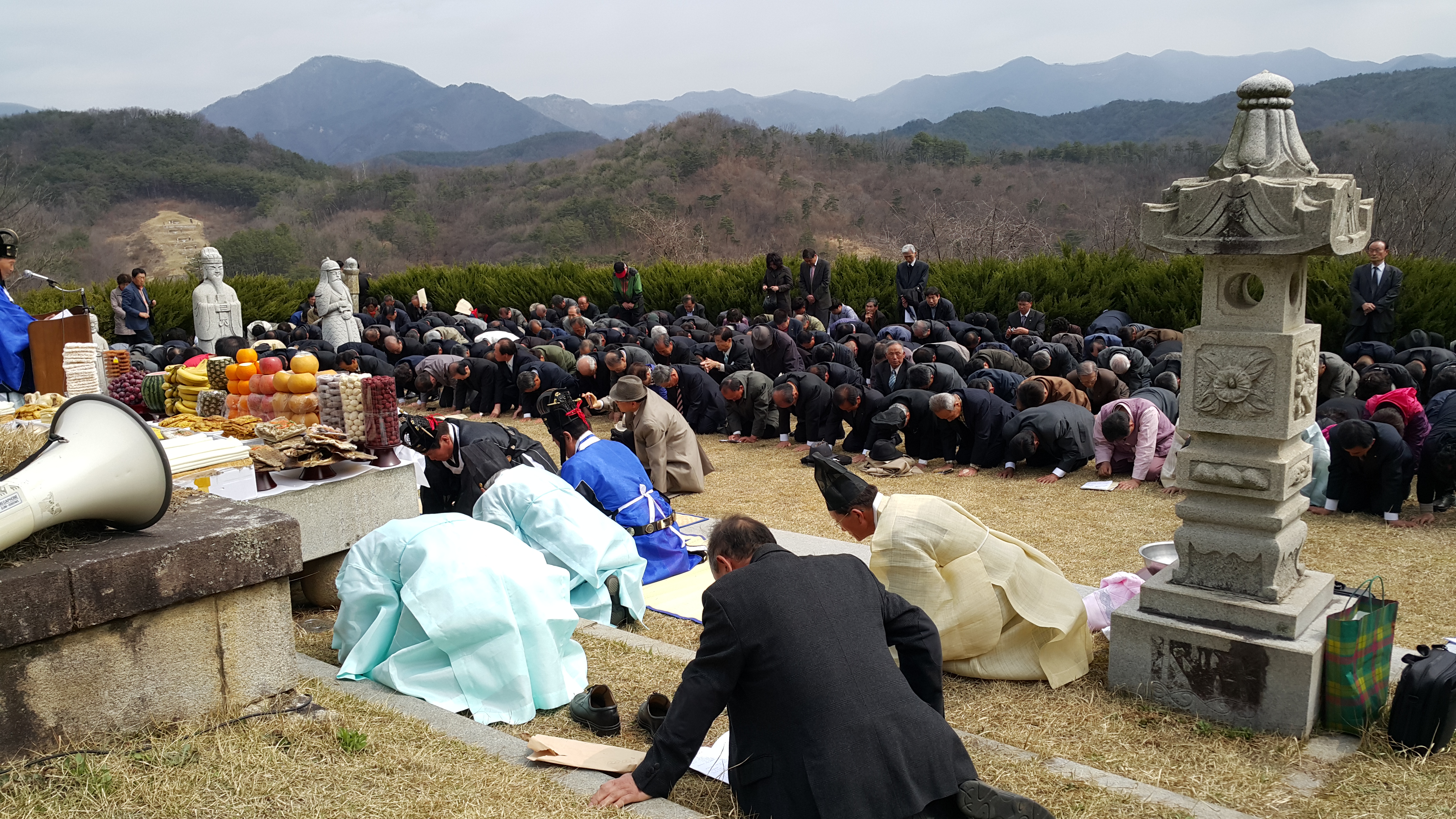 이제 어려운 시국을 벗어남에 따라 從前처럼 始祖先塋(墓前)에서 盛大히 奉行할 것입니다.