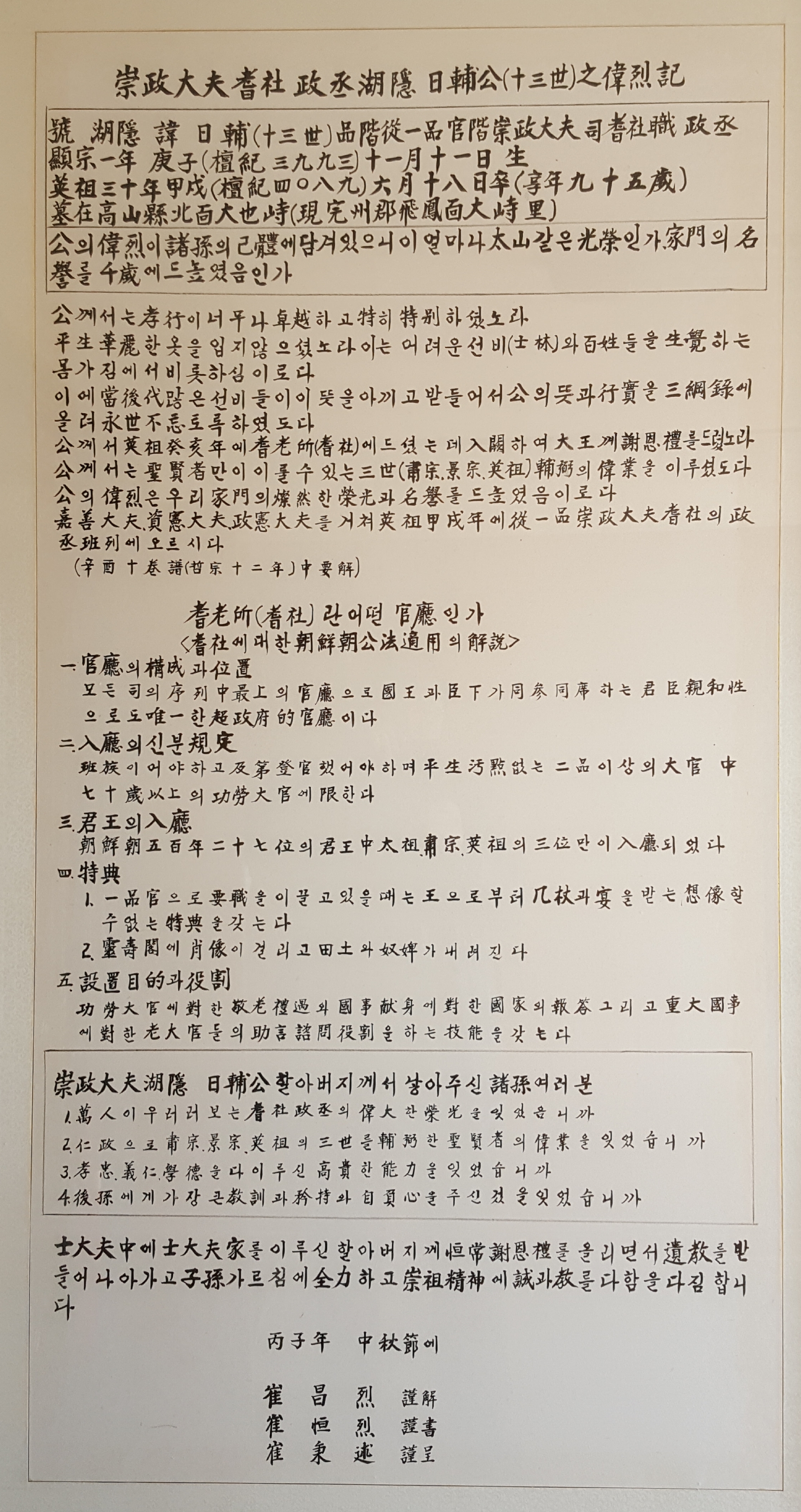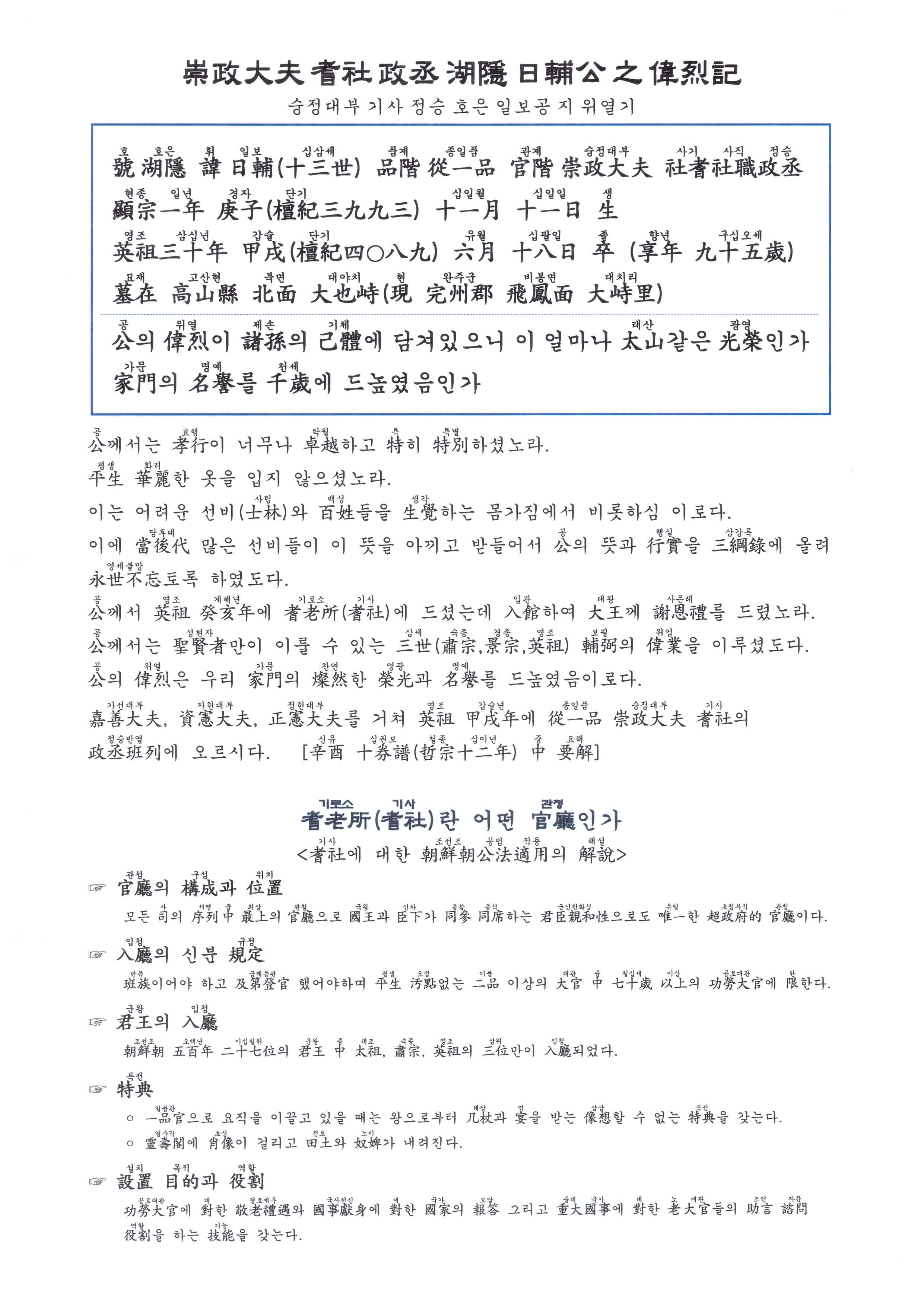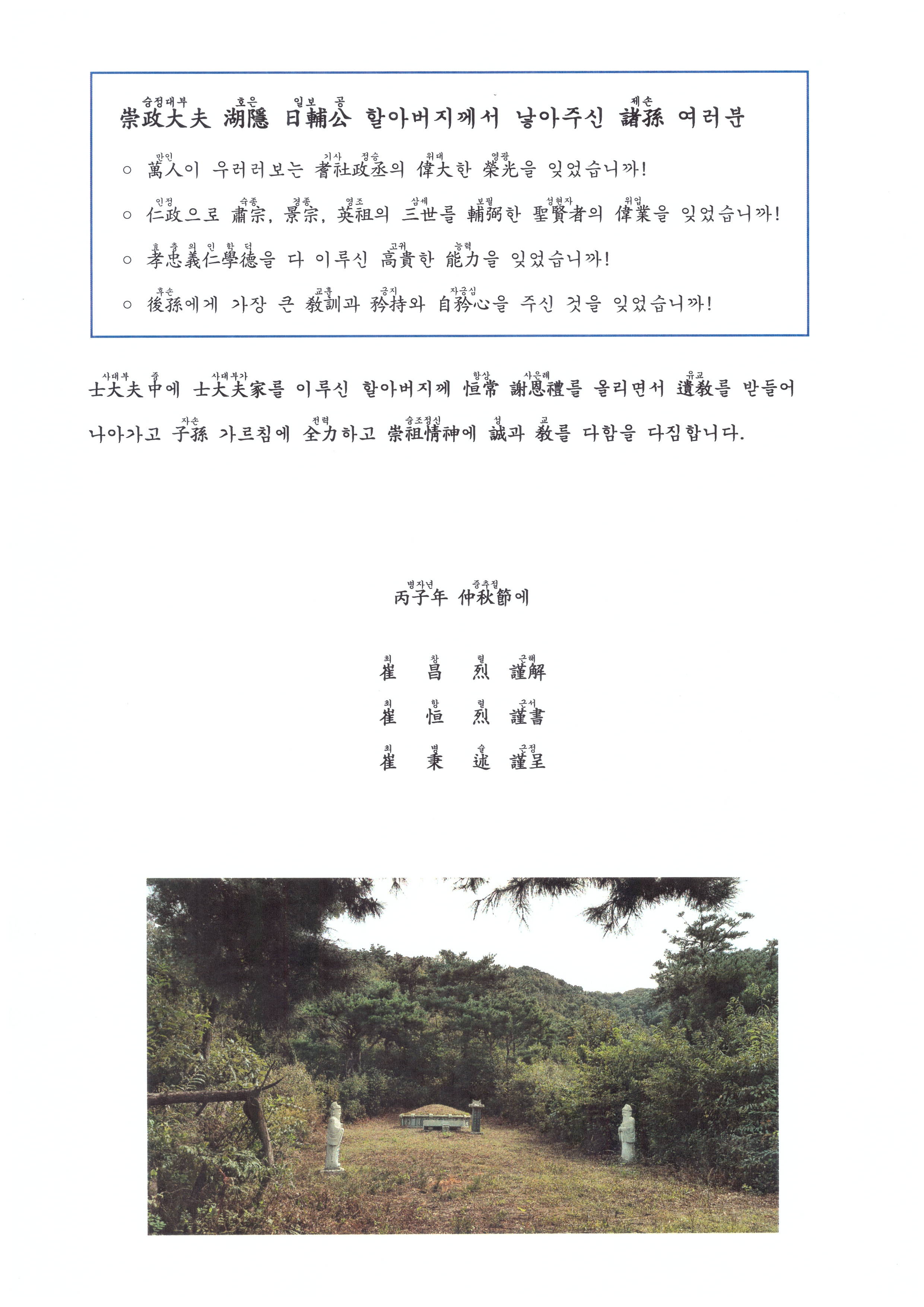 모셔진 이 높으신 숭정대부 할아버지의 선영을
