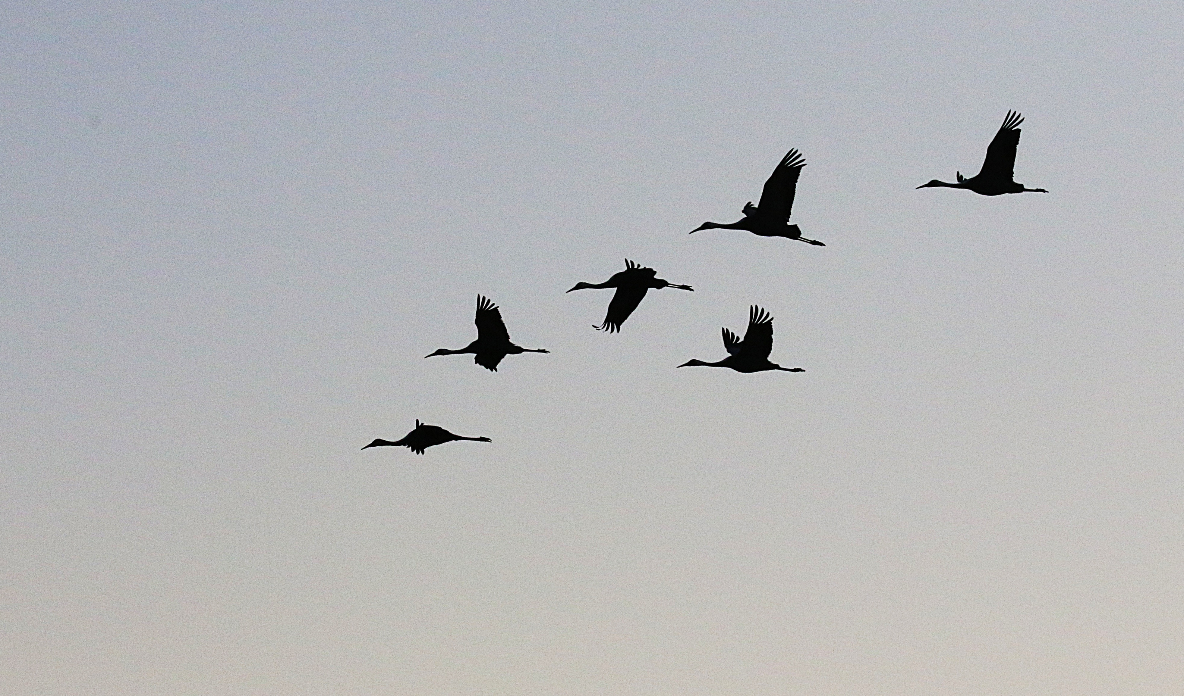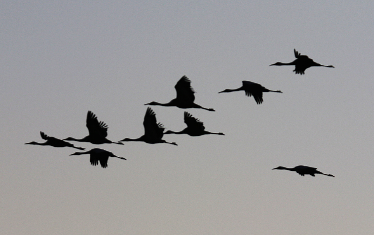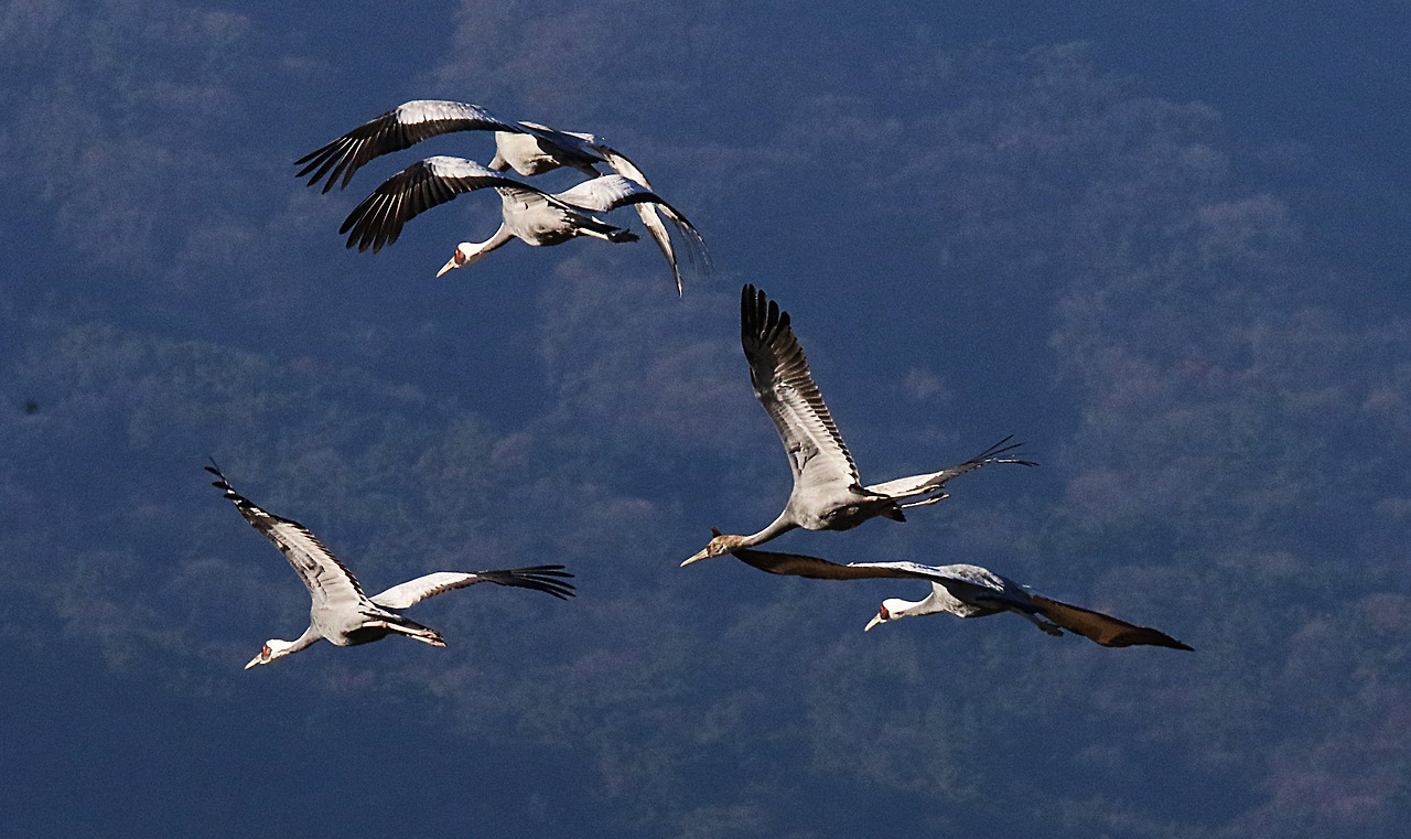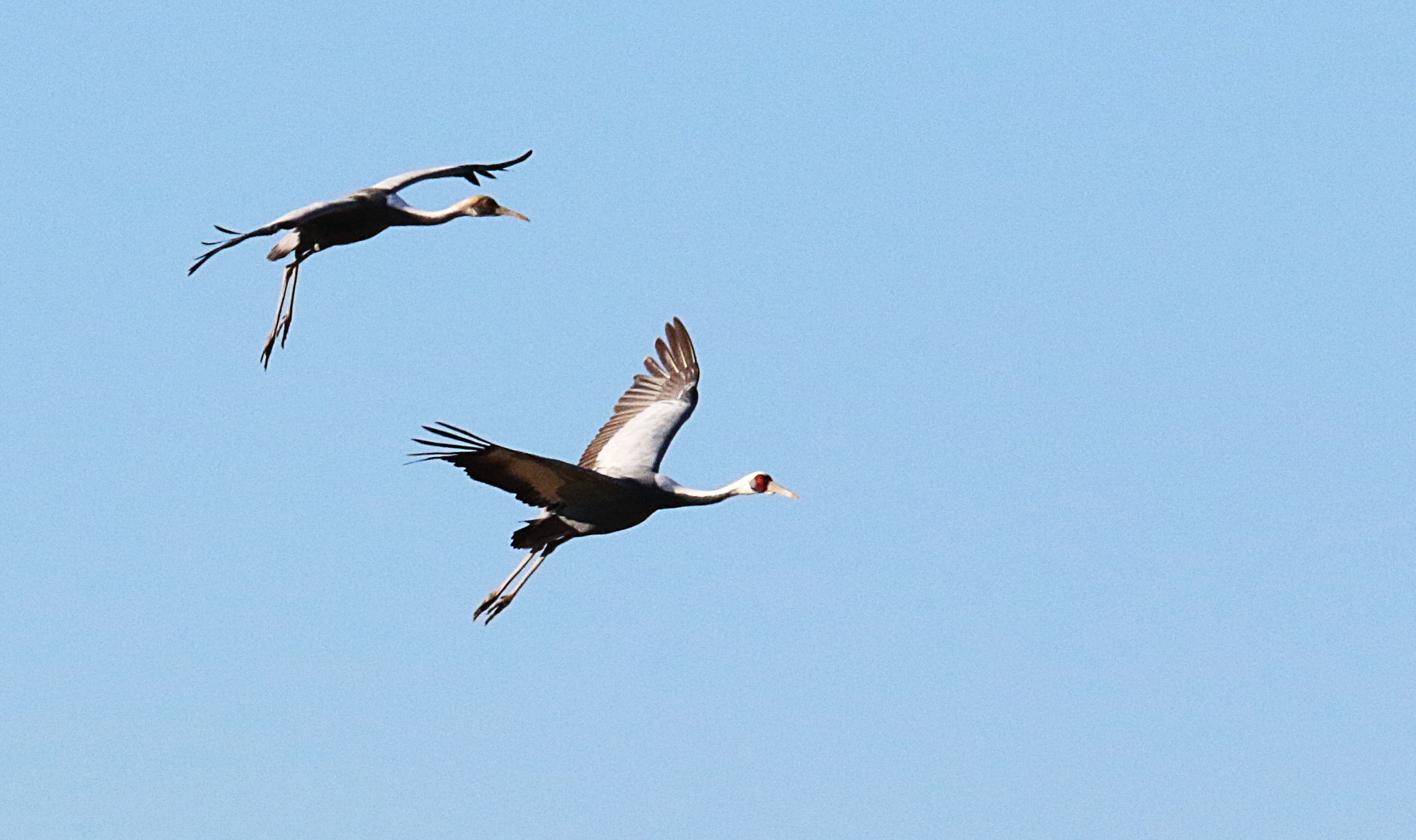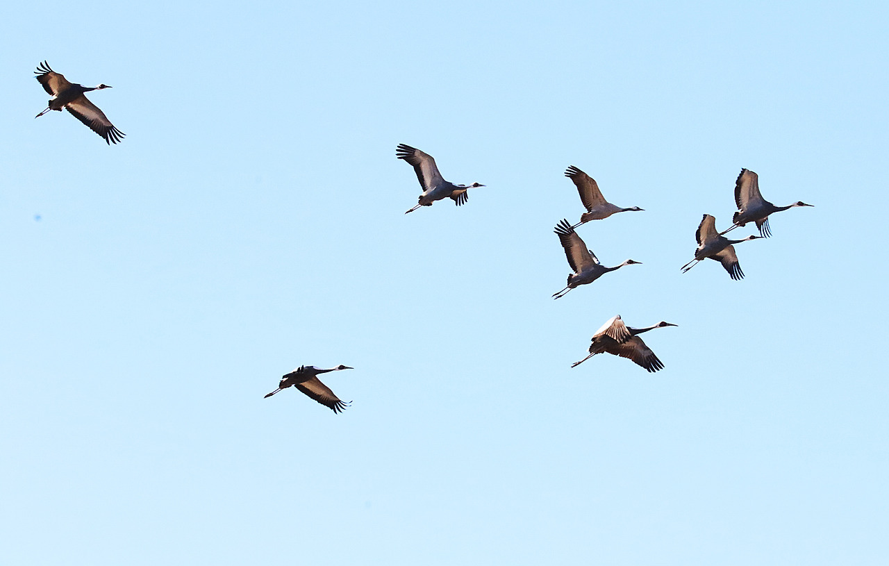 주남저수지에 겨울의 진객 재두루미가 흑두루미와 함께 돌아왔다.