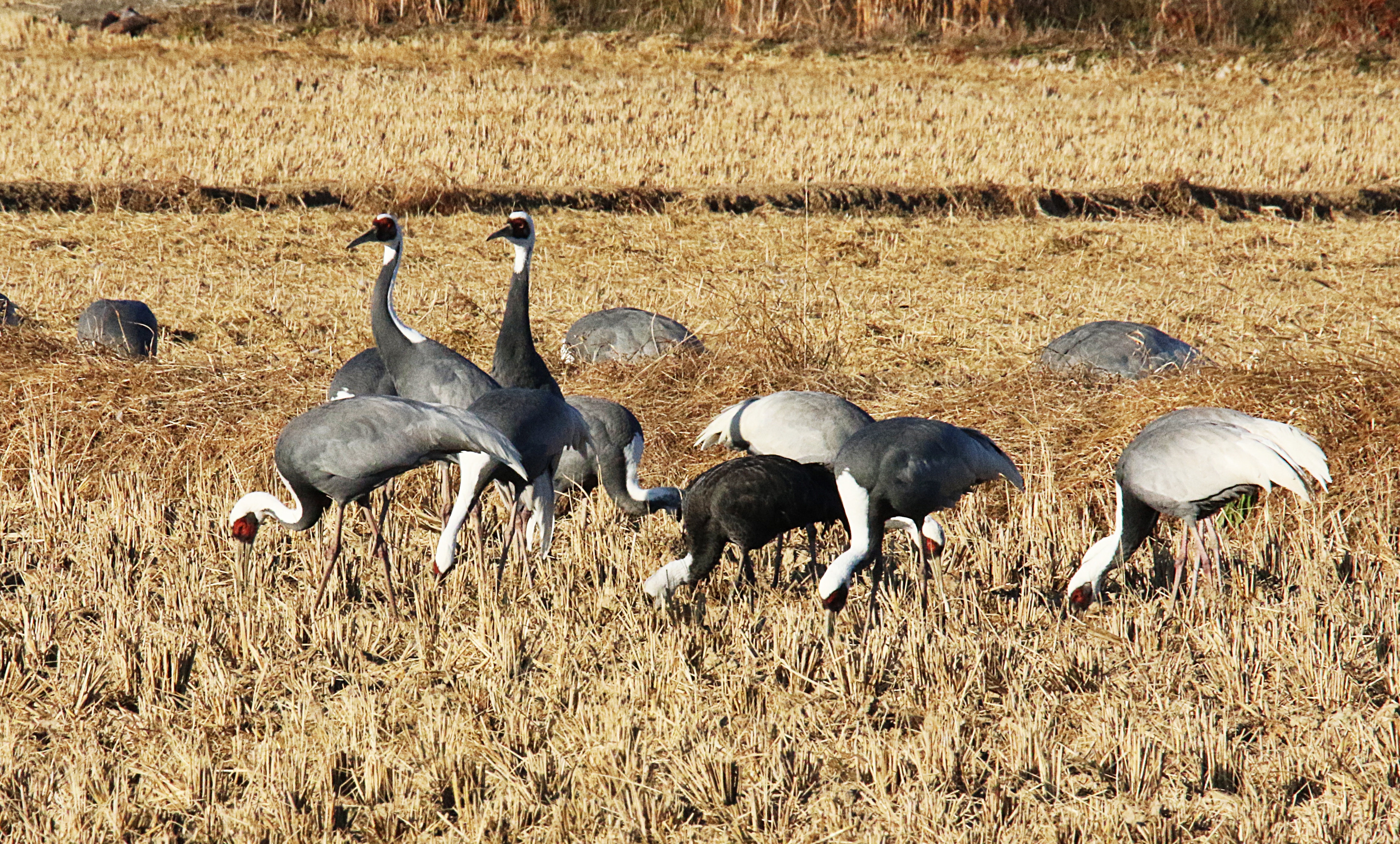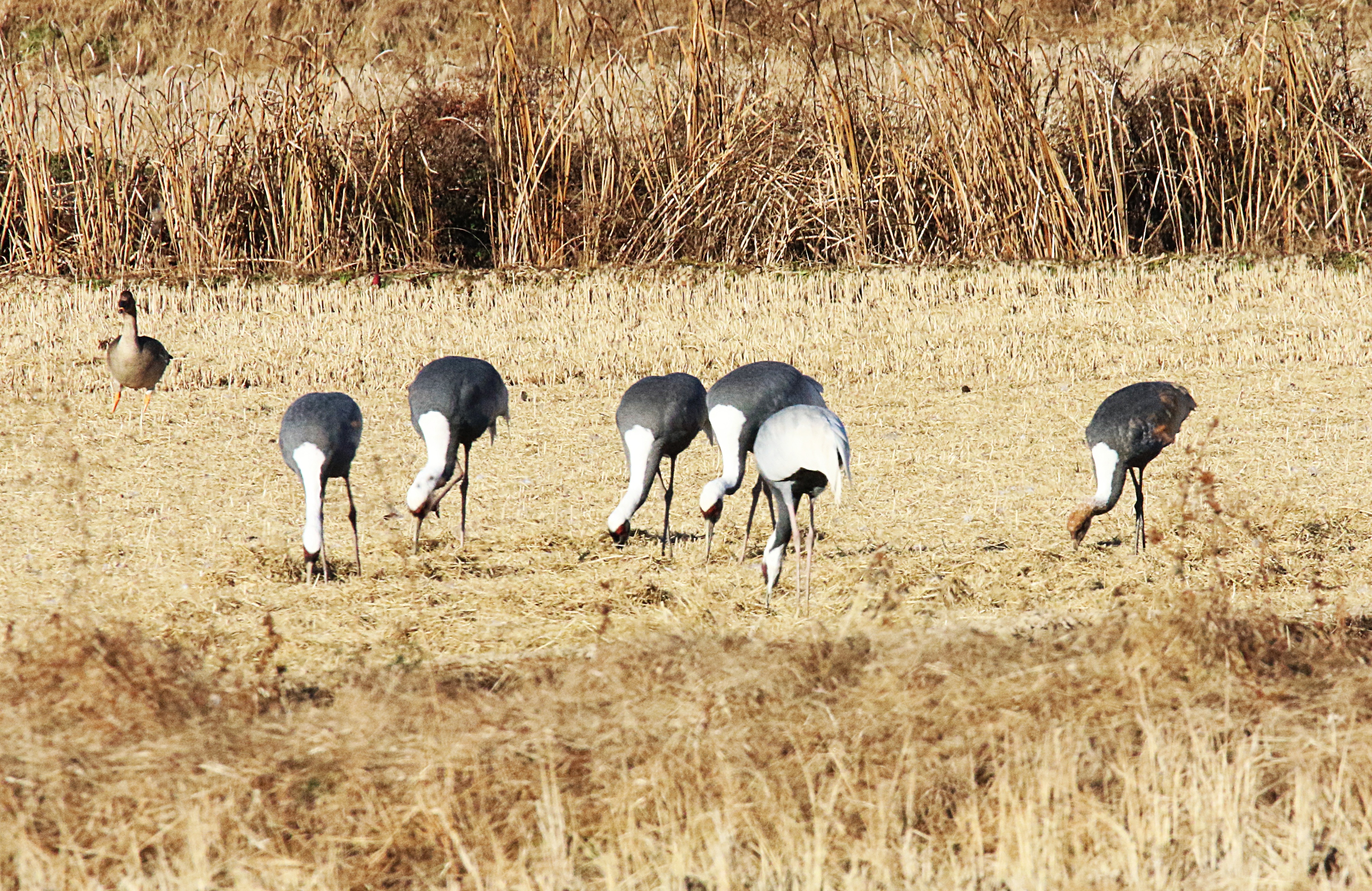 지금까지 흑두루미는 주로 순천만에만 왔었는데 5마리정도가 보인다.