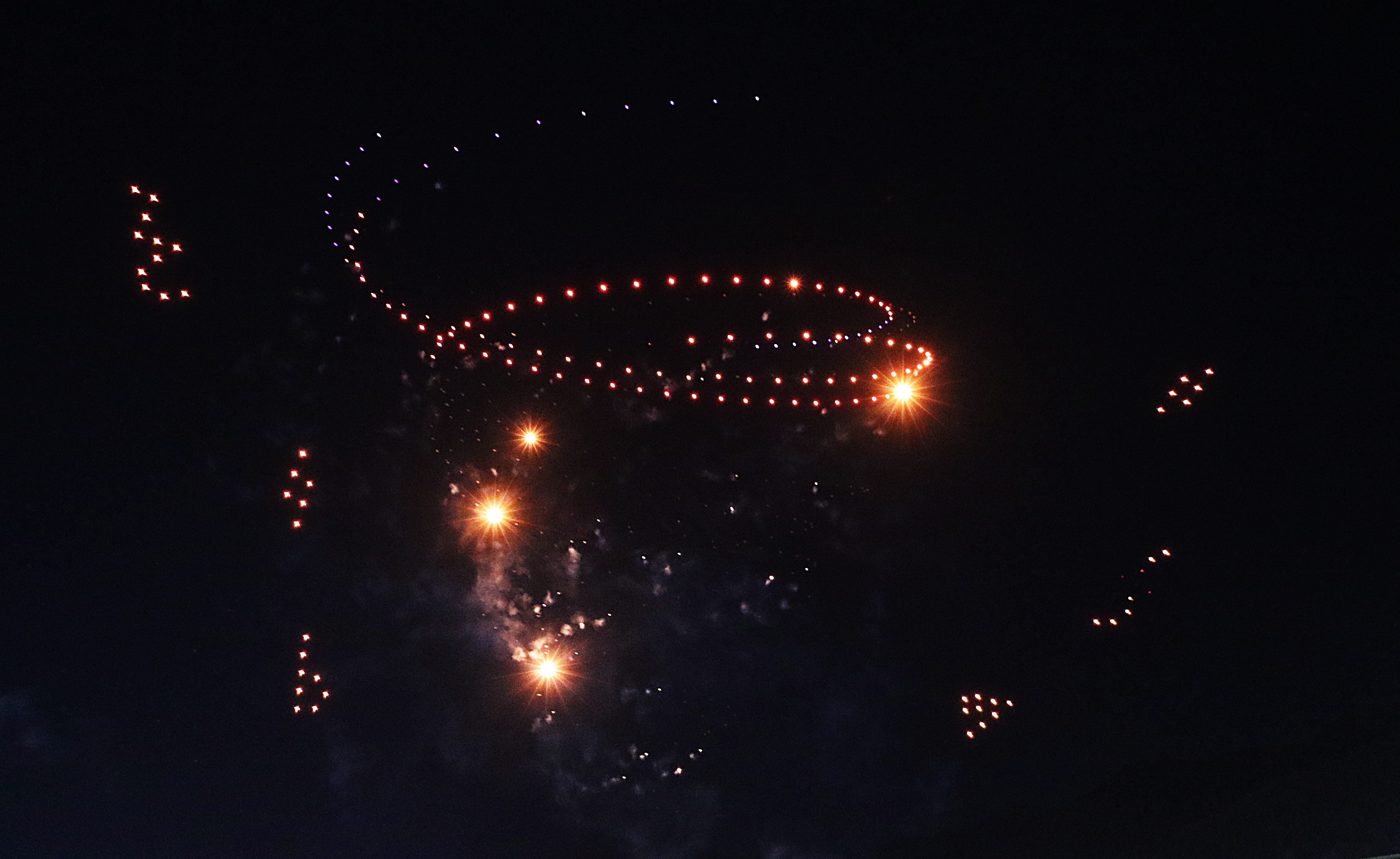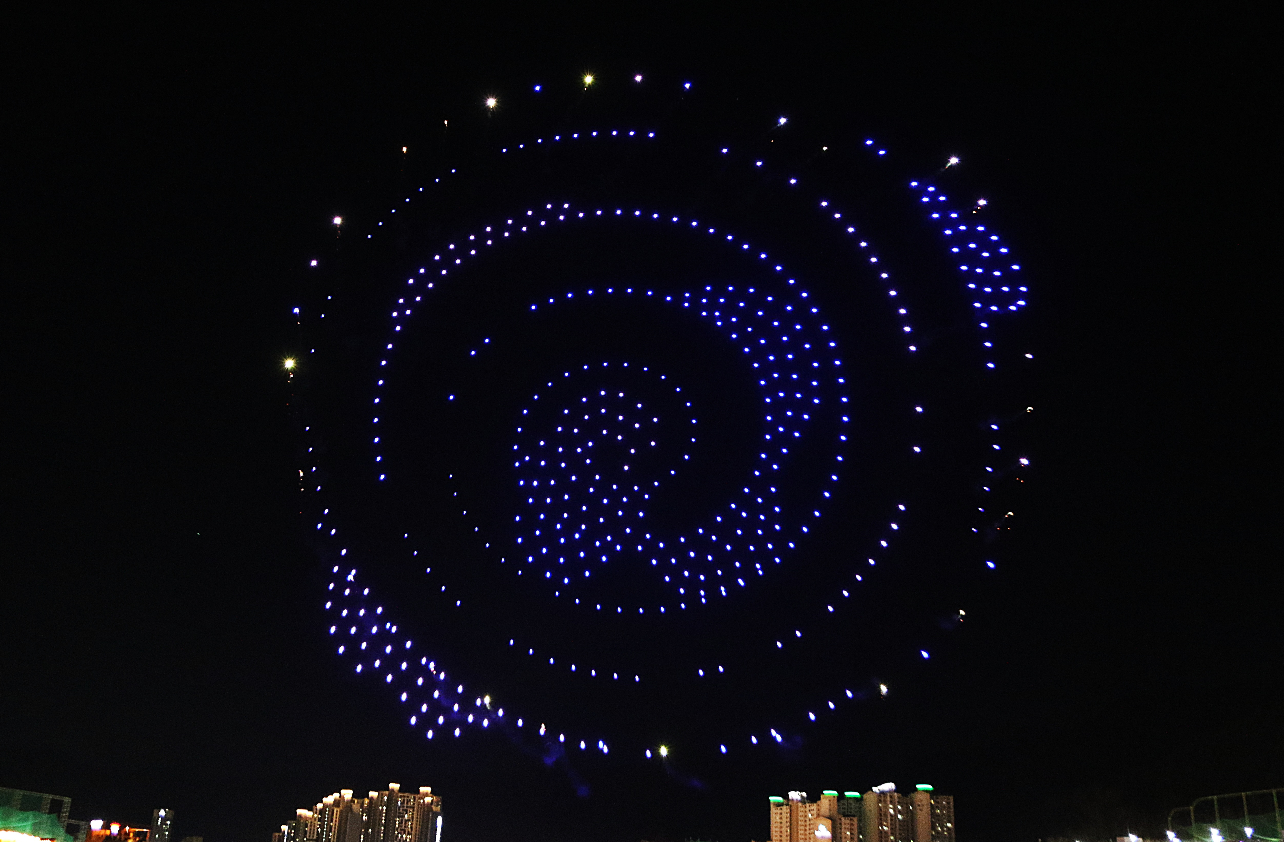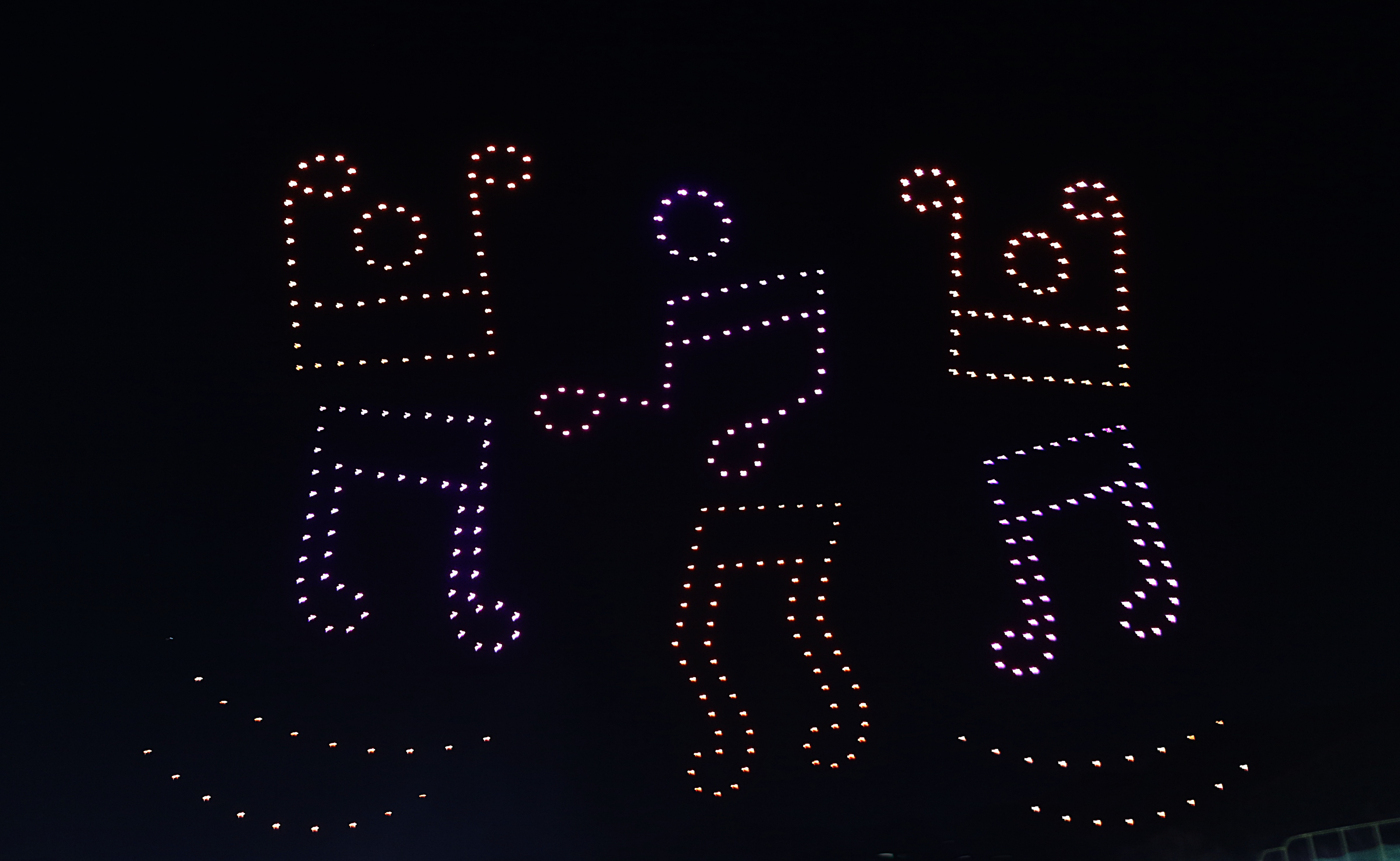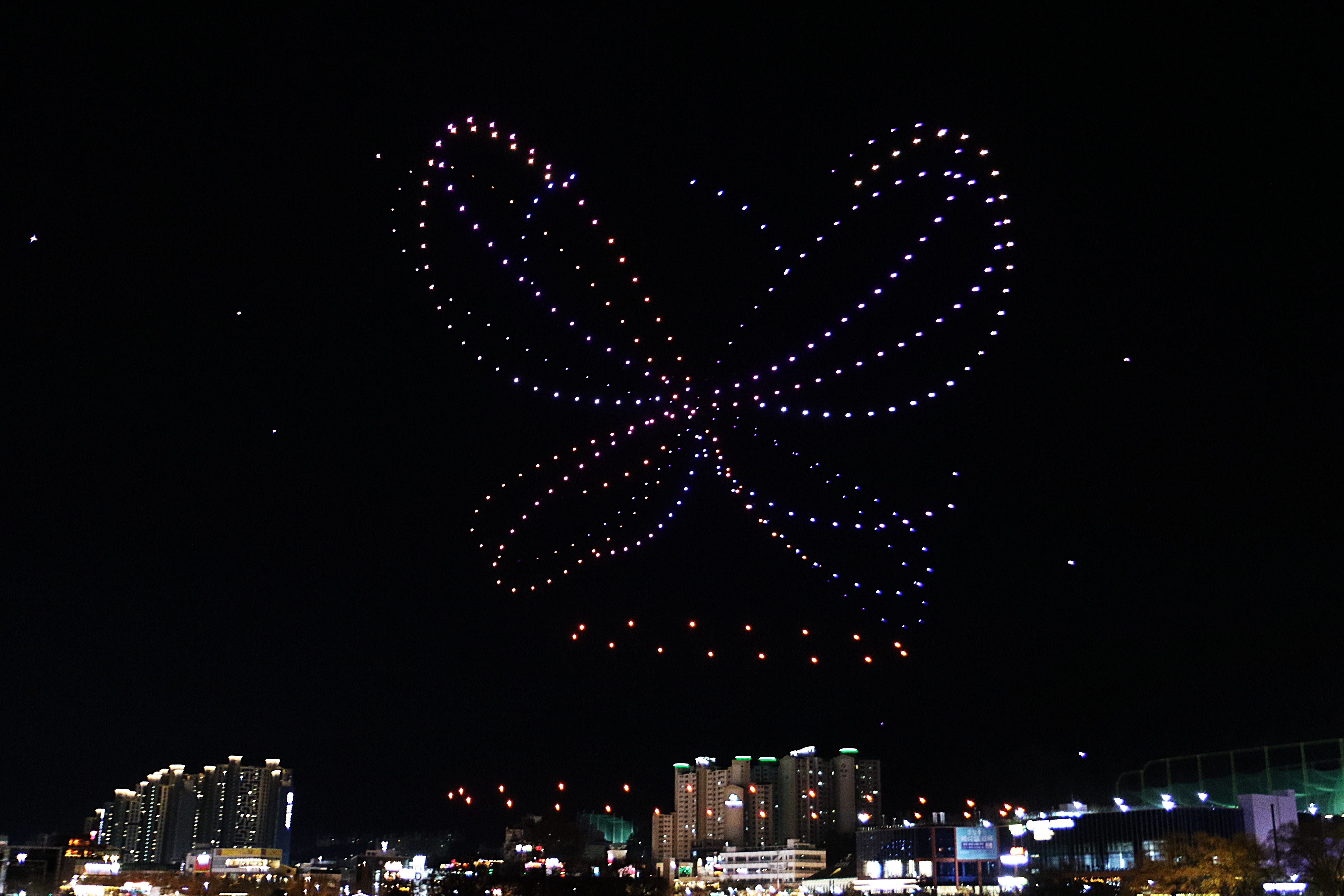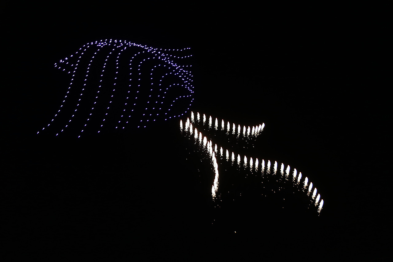 수많은 시민들이 몰려 하늘에서 펼쳐지는 환상의 불빛을 감상한다.