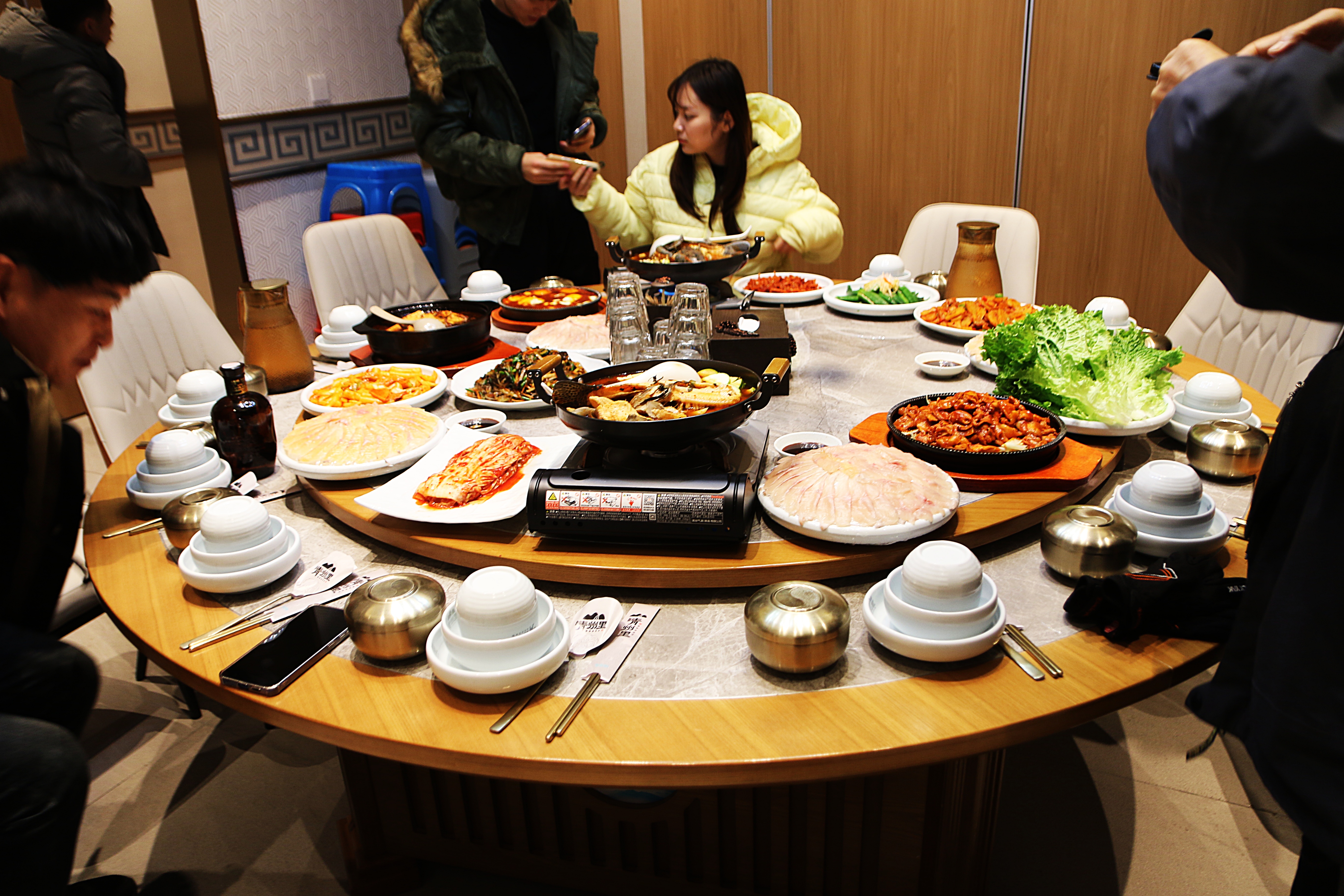 산천어 회와 찌개의 우아한 상차림