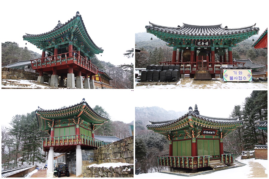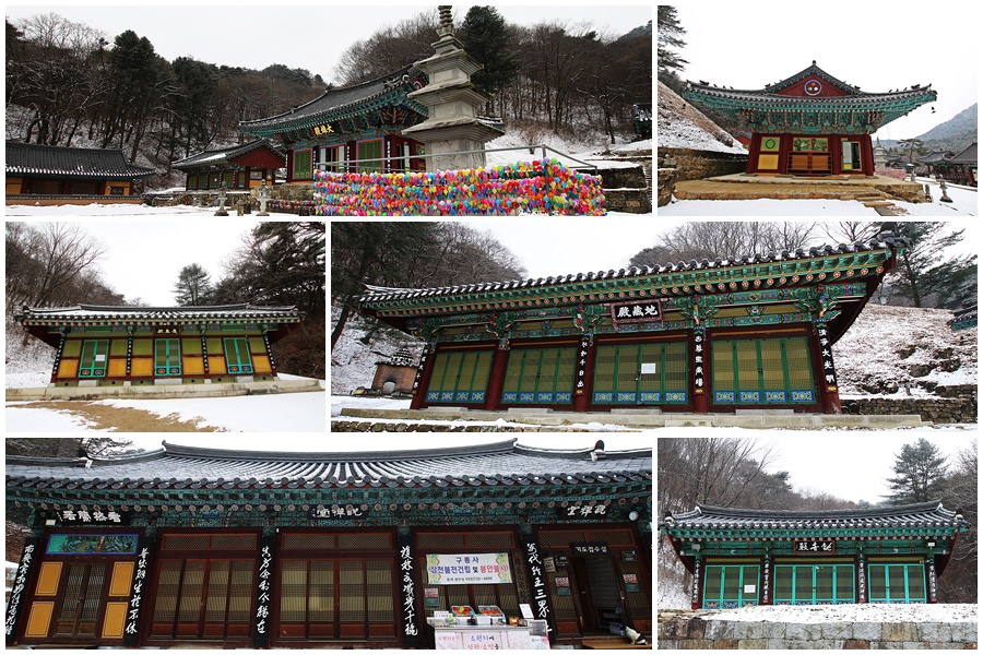 (위)삼층석탑과 대웅전 측면, (중간)응진전과 지장전, (아래)설선당과 관음전