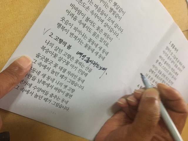 좋아하는 ‘고향의 봄’과 할아버지께 배우고 싶은 ‘기러기’입니다.