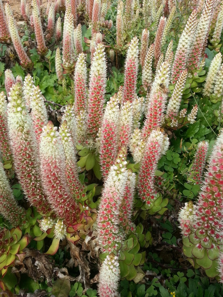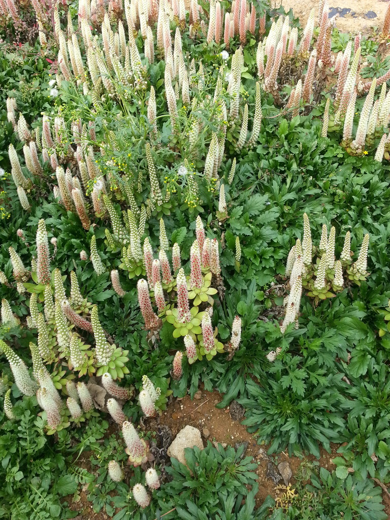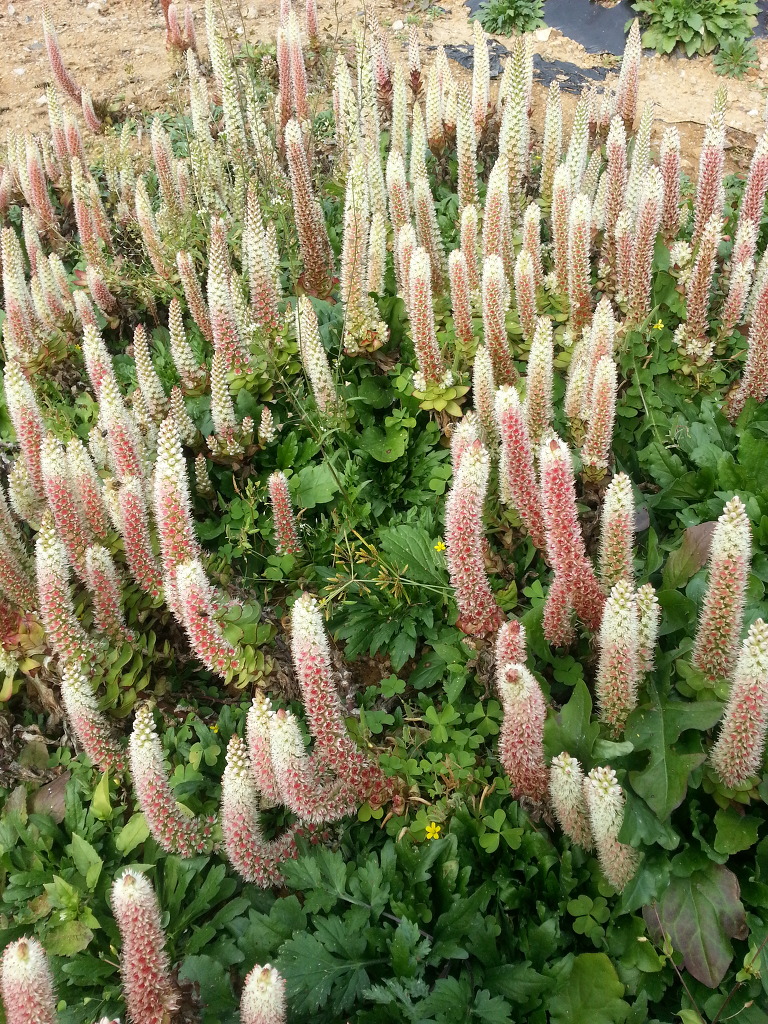 잠시 둘러본 와송밭........ 한켠에 둥근바위솔이 꽃대를 올리고 이제 붉게 물듭니다.