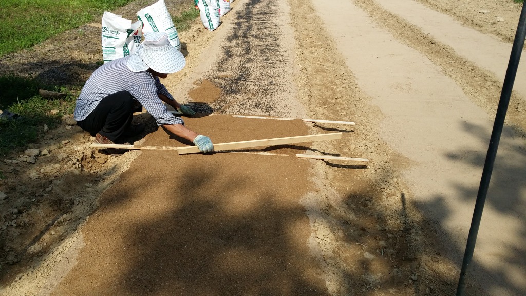 며이나물씨앗을 뿌리기전에 다져 줍니다