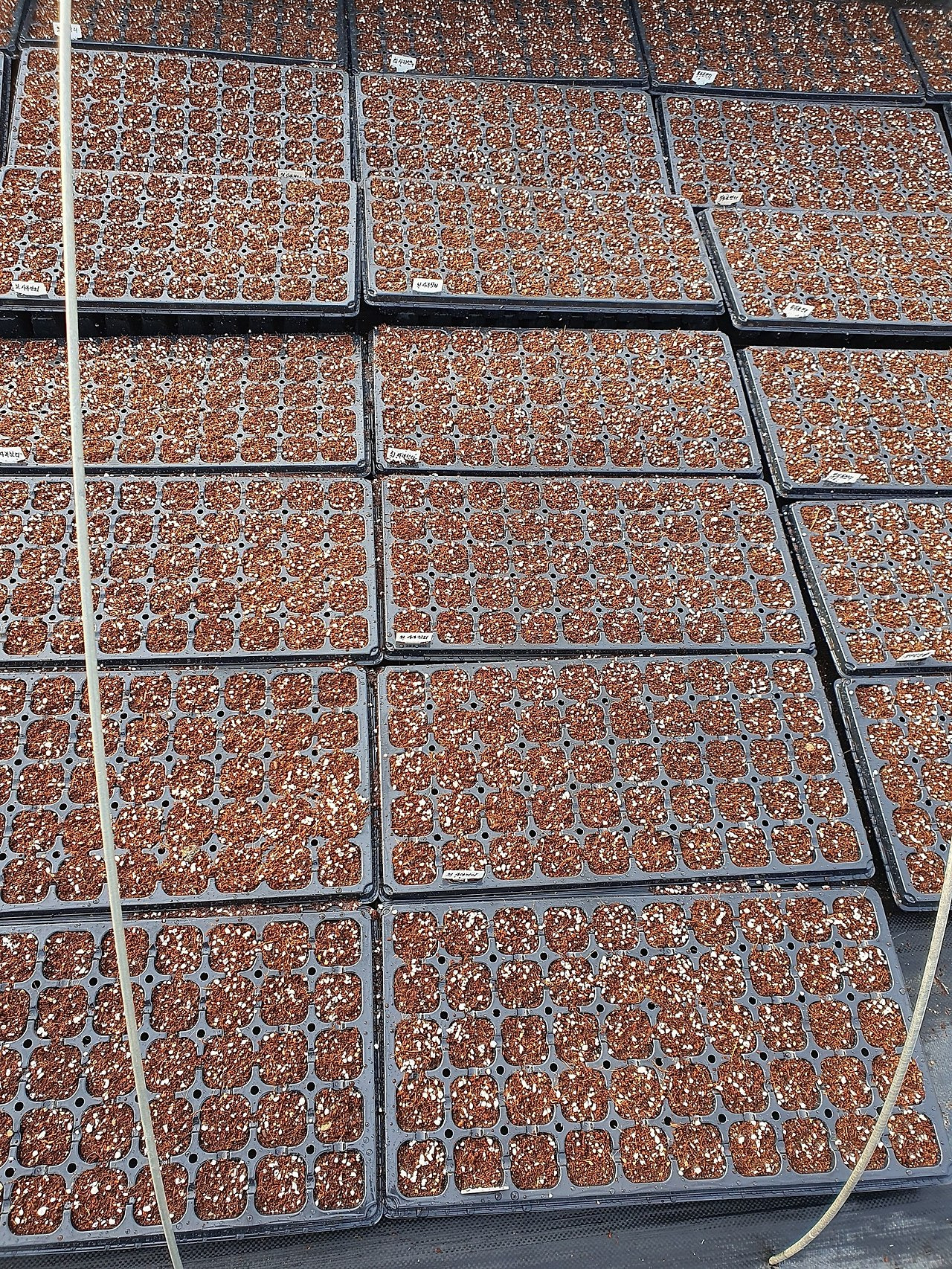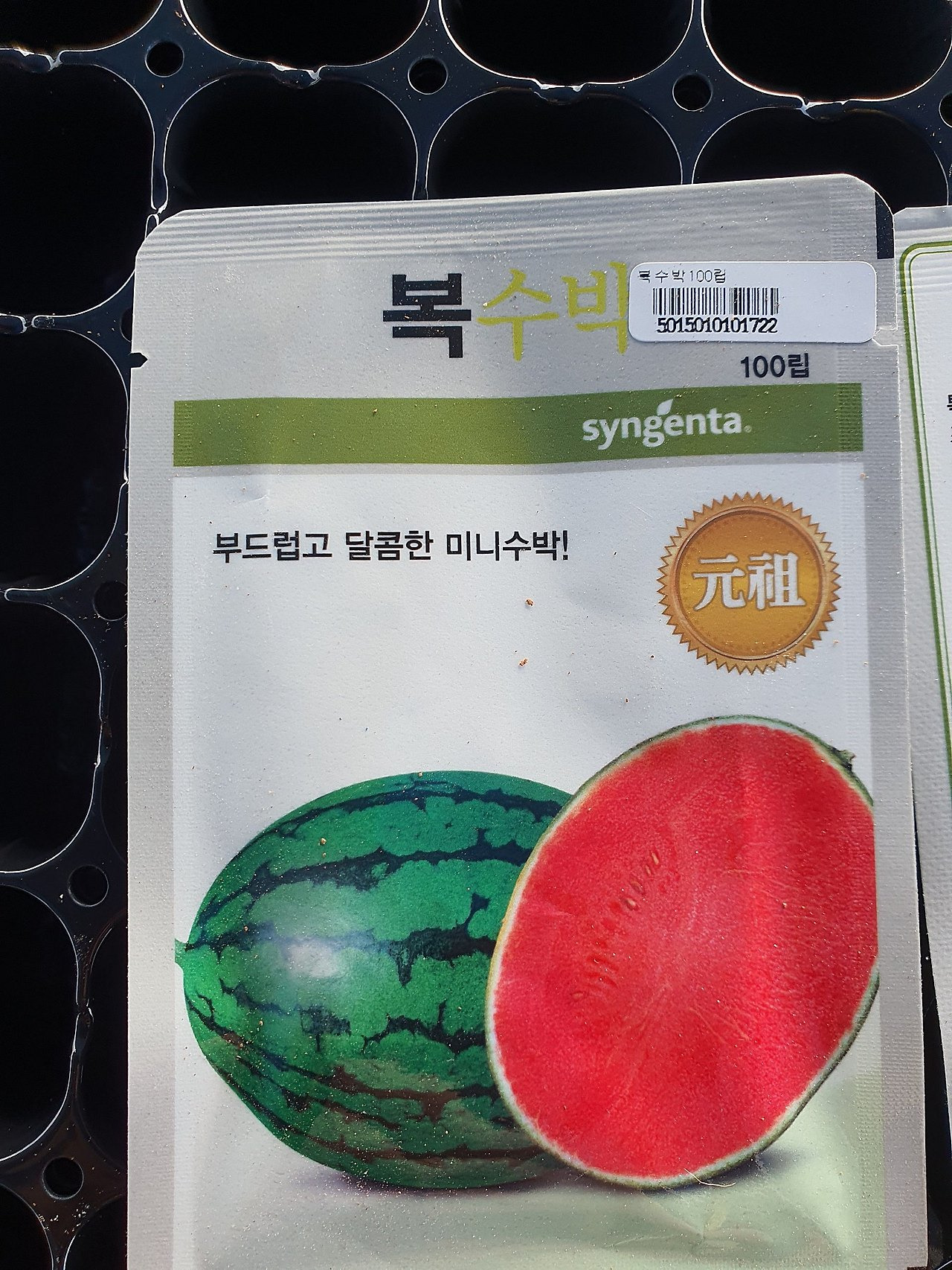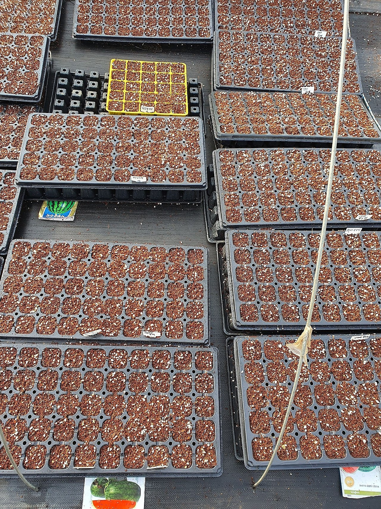 -흰사과참외, 신젠타복수박, 엘림수박(중형수박), 부추씨앗 파종한 모습입니다.