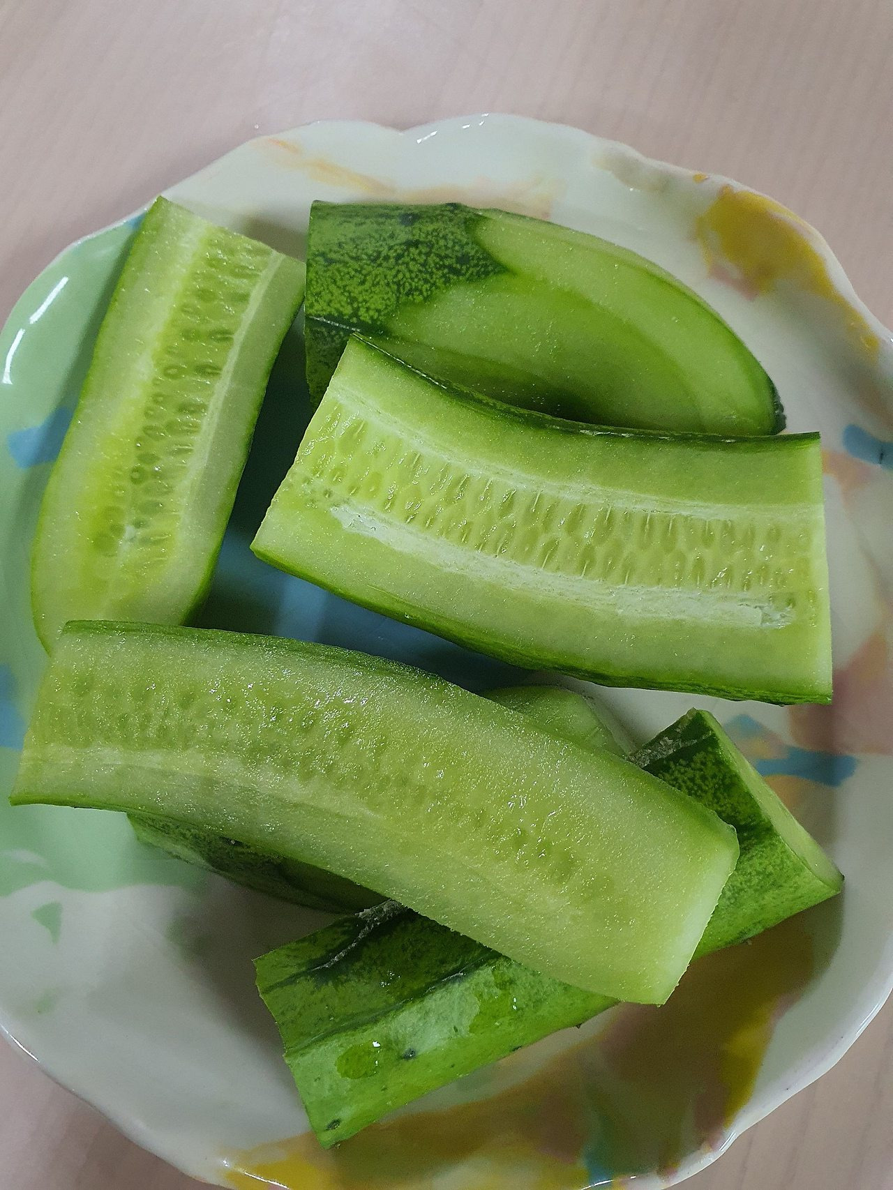 아침에 작업마치고 한봉투 따와서 풀었습니다. 생오이로 션하게 먹으면 아주 좋습니다.