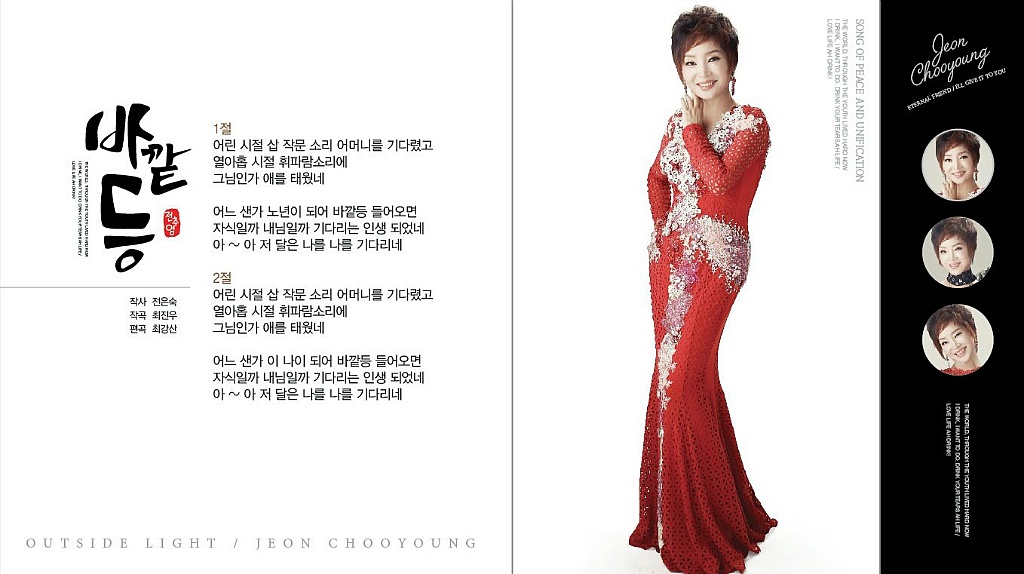 가수 전추영 바깥등 신곡음반 자켓사진 소개합니다 작성자가수홍보방송국|작성시간18.01.25|조회수1,044 목록 댓글 1 글자크기 작게가 글자크기 크게가 가수 전추영 바깥등 신곡음반 자켓사진 소개합니다 다음검색 현재 게시글 추가 기능 열기 북마크 공유하기 신고 센터로 신고 댓글 댓글 1 댓글쓰기 댓글 리스트 작성자foreversjy | 작성시간 18.01.26 바깥등 밝기가 태양만 같아라 ! 댓글 전체보기