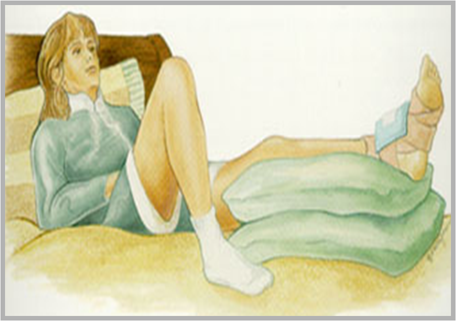 압박은 종창을 감소시키고, 급성 손상인 경우 발목을 올려주면 정맥혈과 임파액 회귀를 증진시키기 때문에 부종이 감소됩니다.