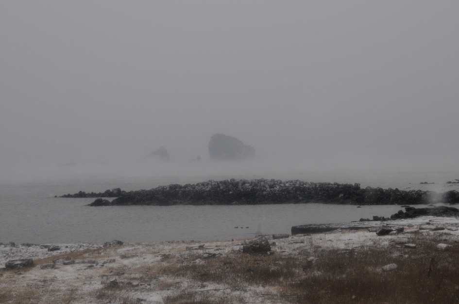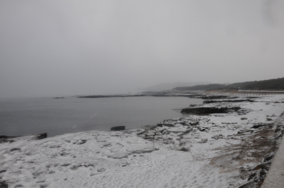눈보라가 날리다가 ,반짝 해가 났다가 푸른 하늘이 보이는가하면 바로 검은 구름과 눈발이 날립니다.