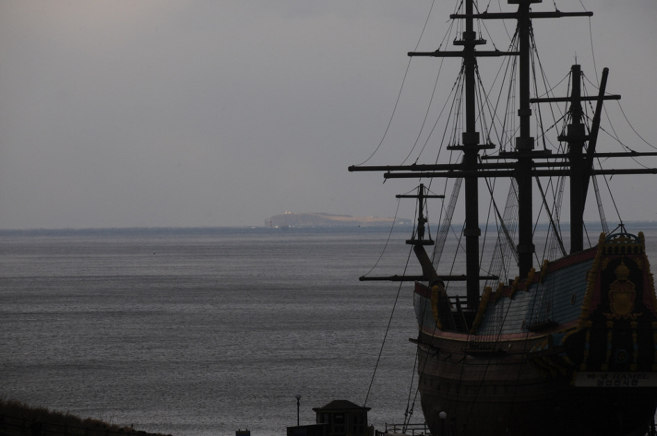 하멜상선-그 뒷쪽으로 마라도가 희미하게보입니다.