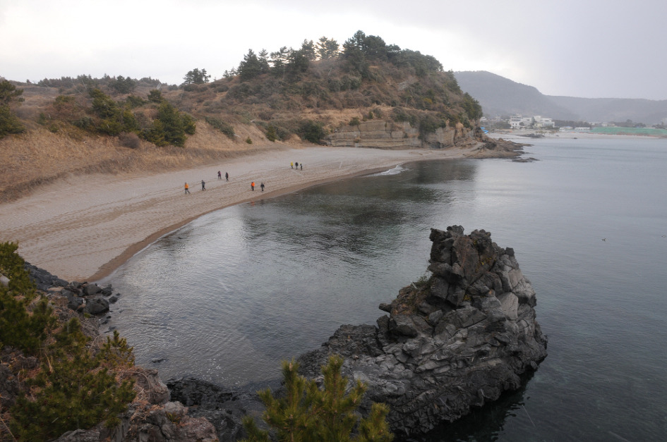 그래서 일반인들의 출입을 통제하느라고 저렇게 목책이 둘러쳐져 있으며 올레꾼들을 그길을 피하여 해안가를 삥~~~돌아가야 합니다.(참조 : 현지안내서)