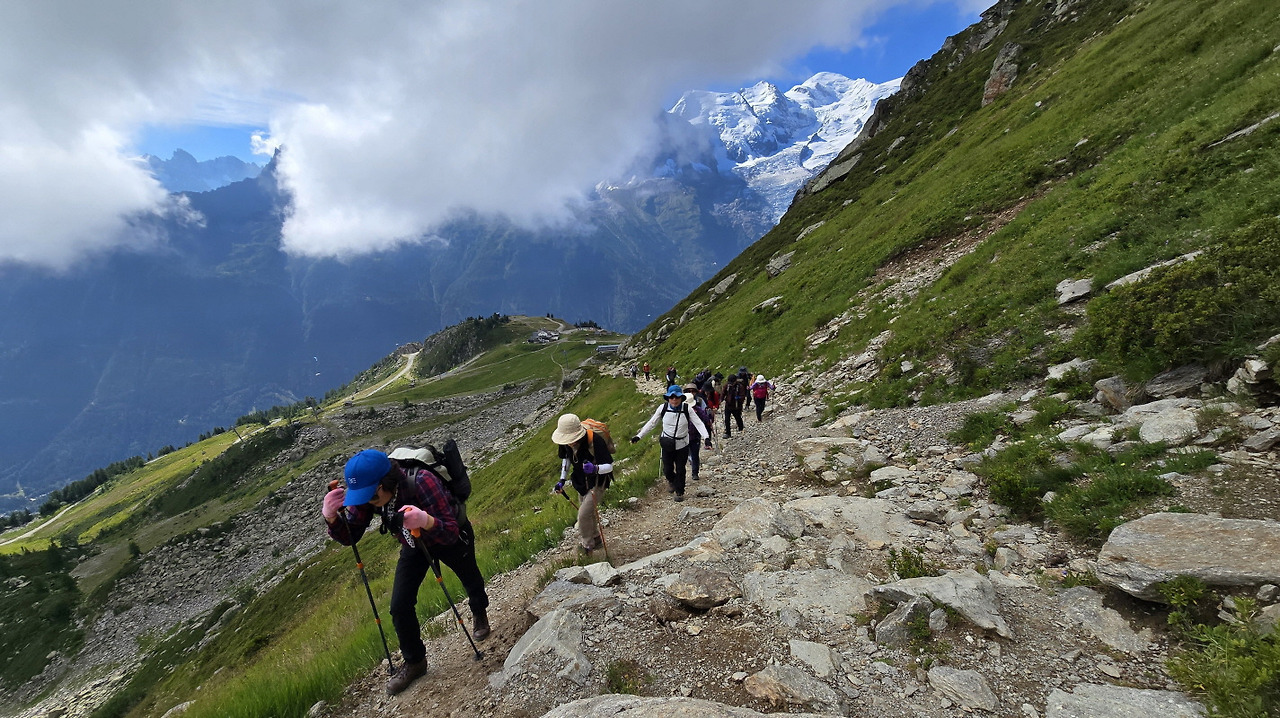 | 6일차 | 샤모니 | 도보 곤돌라 케아블카 도보 시티버스 | 전일 | -조식 후 브레방(Le Brevent) 케이블카 승강장으로 이동 -케이블카 이용 프랑프하(Planplaz) 경유 브레방(Le Brevent)으로 이동 -브레방(Le Brevent) 도착 후 전망대에서 몽블랑(Mt.Mont-Blanc) 조망(자유시간 30분) -브레방(Le Brlevent)전망대에서의 자유시간 종료 후 트레킹 -GR5 루트와 만나는 콜데 브레방(Col de Brevent) 도착 후 자유시간(30분) -자유시간 종료 후 프랑프하(Planpraz) 방향으로 하산 -프랑프하(Planpraz), 브레방(Le Brevent), 프레제르(Flegere) 갈림길 도착 후 -휴식 종료 후 샤라논(Charlanon)으로 이동 -샤라논(Charlanon) 도착 후 중식 -중식 후 하산 트레킹 -샤모니(Chamonix) 도착 후 트레킹 종료 -자유시간 종료 후 숙소로 이동 후 석식 -석식 후 휴식 및 취침 [숙 소] 샤모니 알펜로제 샬레 또는 동급 [식 사] 조식 : 숙소식 중식 : 행동식 석식 : 현지식 |