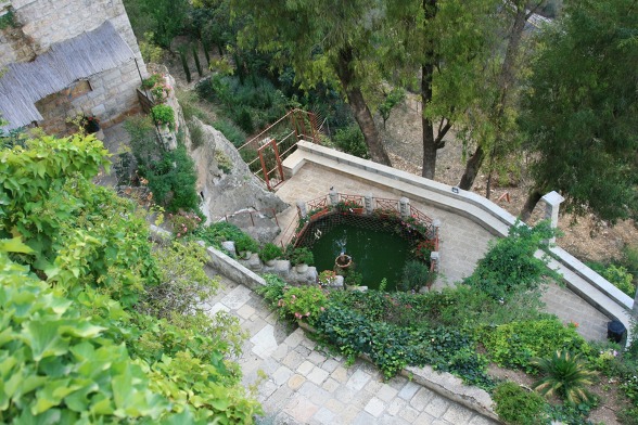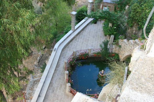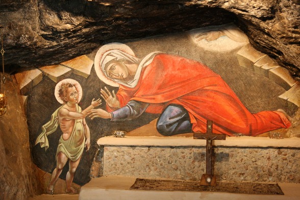 연못 바로 옆에는 세례자 요한의 동굴이 있다. 길이가 6m, 폭이 3m 그리고 높이가 대략 2m되는 동굴은 성녀 엘리사벳과 아기 요한의 숨결이 묻어 있는 동굴이다. 주님께서 오실 길을 준비했던 세례자 요한에게 그의 겸손함을 간구할 수 있는 동굴이기도 하다.