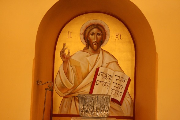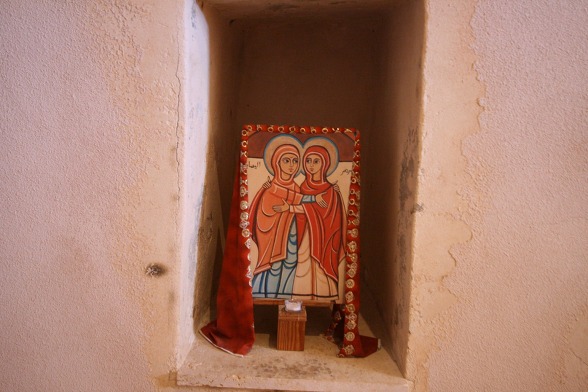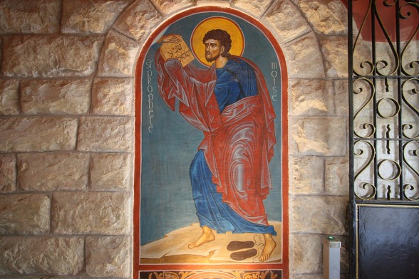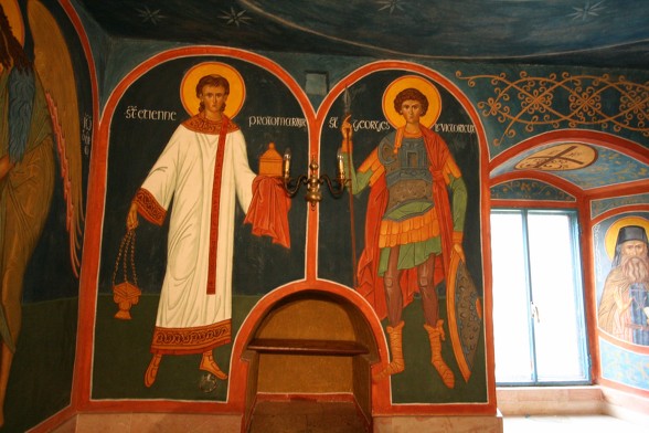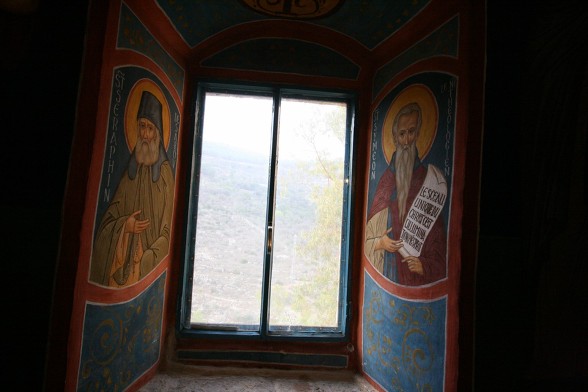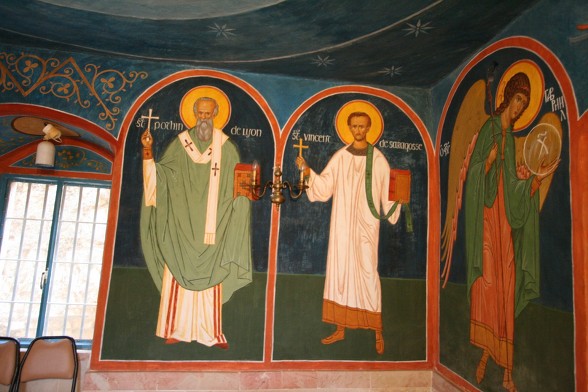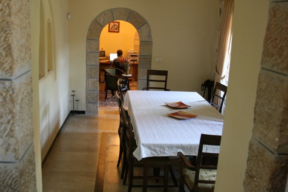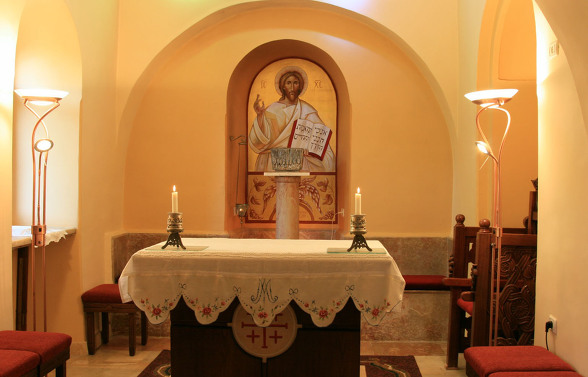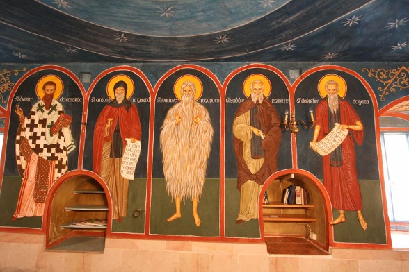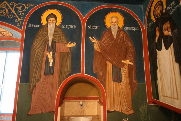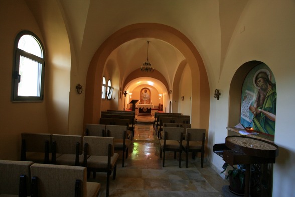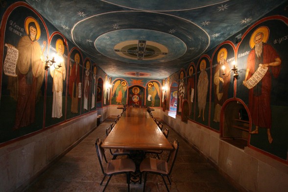 동방 가톨릭 멜키트 은수자들이 사용하던 수도원 식당...이콘은 소련 작가에 의해 그려졌다. 동방 가톨릭 수도자 답게 가운데 성모님을 중심으로 왼쪽은 서방의 성인들과 오른쪽은 동방의 성인들을 그렸다.