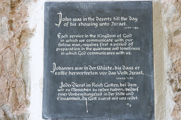 고요와 침묵이 있는 세례자 요한 광야 수도원은 ‘은수자’의 전승을 이어가는 관상과 기도의 장소이다. 무엇보다도 유대교뿐만 아니라 정교회 등 타 종파들과 그리스도 교파들에게 활짝 열려진 친교의 장소이기도 하다.