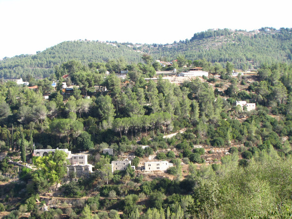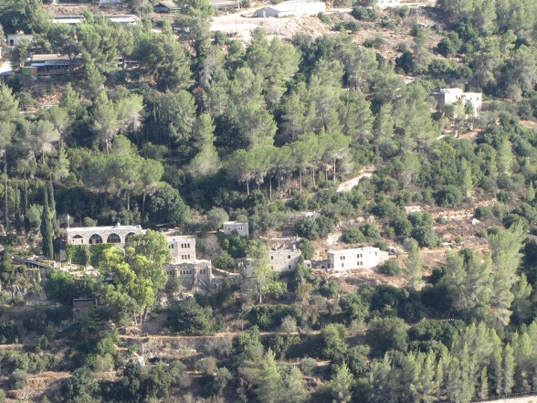 아인카렘...사진 오른쪽...중간 부분이 아인카렘 하다사 병원이며, 왼쪽이 에벤 사피르 모샤브이다.