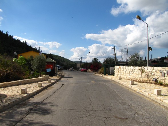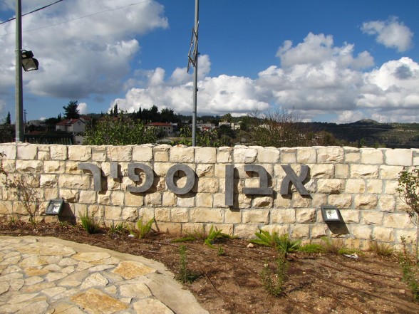에벤 사피르 모샤브는 언덕 위에 세워진 마을이다. 마을 너머에 수도원이 있다.