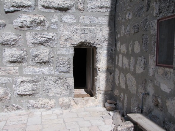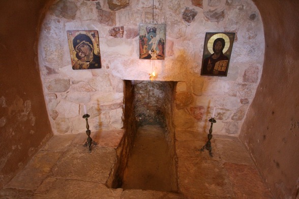 무덤 안으로 들어가는 입구 위쪽에 있는 십자가는 십자군 시대의 것이라고 한다.