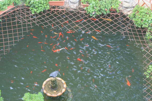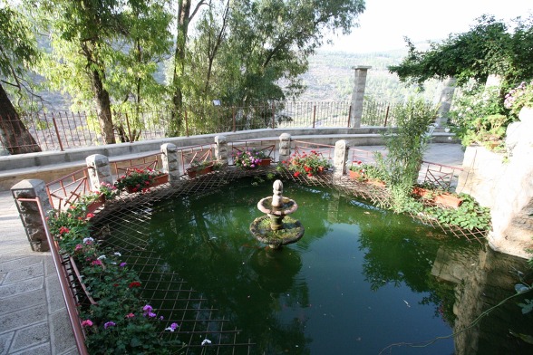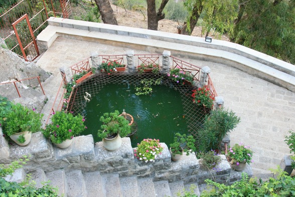 수도원 베란다에서 연못을 바라보며
