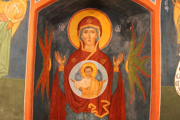 수도원 식당 안의 성모님 이콘