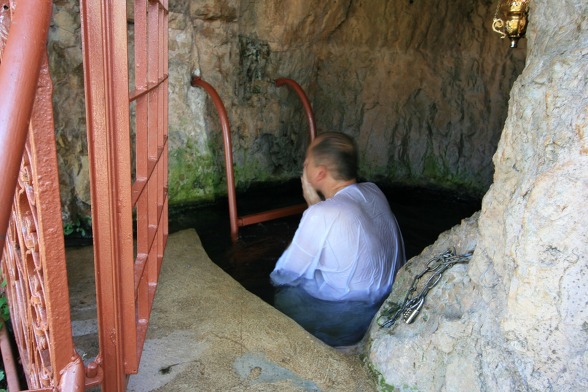 샘에서 흘러나온 물은 아래에 있는 작은 연못에 모인다. 이 작은 연못은 정결례를 위한 소중한 물이다. 정교회 신자들은 하얀 가운으로 갈아입고 한명씩 1.5미터쯤 되는 연못에 들어가 세례자 요한이 외쳤던 회개의 세례를 기념한다. 회개를 선포하고 세례운동을 했던 세례자 요한 그리고 예수님에게 세례를 베풀었던 세례자 요한을 온몸으로 느끼고 싶은 마음일 것이다. 유대교 정통파 신자들도 이곳에 정결례(mikve)를 하기 위해 즐겨 찾는 곳이었지만 2006년 30여명의 청년들이 몰려와 소란을 피운 후로는 이들의 정결례를 통제하고 있다.
