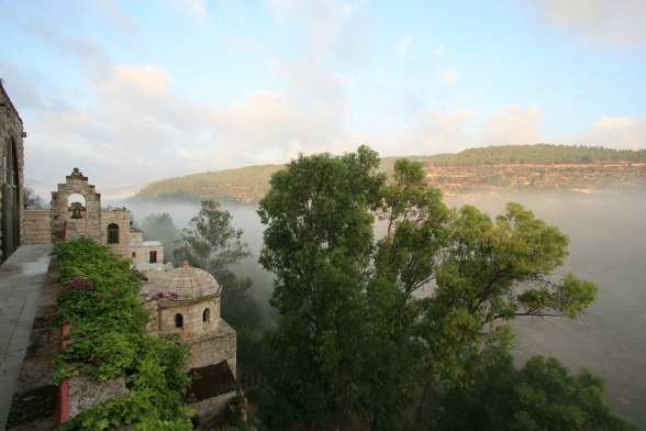 사타프에서 바라본 에벤 사피르 모샤브와 수도원