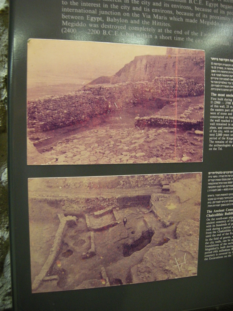 텔 므깃도는 고대 근동 세계에 있어서 이집트와 메소포타미아의 두 제국 사이에 대치점이라 할 수 있다. 므깃도는 수 천년 동안 공포와 두려움의 이름으로 사람의 머리에 각인되었다. 지중해 해변에서 이스르엘 평원으로 접근하는 좁은 길에 걸터 앉아있는 므깃도 성은 그 성의 주권자에게 나일과 유프라테스를 잇는 국제해안도로의 자유로운 통행권을 주었다. 국제해안도로는 대상들이 오가는 무역로였는데 므깃도는 그 중심적인 위치에 있었다. 므깃도에 처음으로 정착한 사람들은 주전 6천년기에 도착하여 신석기 시대를 이루며 살았다. 이 시기에 바위 위에 긁어서 그린 인간의 모습은 이 첫 번째 정착민들의 작품일 가능성이 높으며 제의적 혹은 주술적 의미를 갖고 있을 가능성이 있다. 금석 병용기의 초기인 주전 4천년기까지는 므깃도의 주민들이 정치적이고 문화적인 실체 속으로 병합되기 시작했다. 좀 더 후기인 초기 청동기 시대의 출발점에서(약 주전 3300년) 므깃도의 신전들 중에 알려진 것 중에 가장 이른 신전이 그곳에 세워졌다. 이 시기가 보여주는 것은 므깃도가 처음으로 국제적인 접촉을 시도했다는 것이다. 원통형 도장이 인쇄된 도자기 파편이 발견되었는데 이는 시리아, 메소포타미아, 그리고 이집트와의 관련이 있음을 보여준다. 3천년기의 끝은 정착을 위한 건설의 시대였다. 거대한 성벽이 이 때 세워졌다. 므깃도의 유명한 제단이 있었는데 높이 1.5m의 원형 돌 구조로 되어 있다. 아마도 이것은 희생제사로 사용되었던 단이었을 것이다. 이어지는 세기들(centuries)에서 적어도 세 개의 신전이 제단으로 신성시된 지역과 확장된 지역에 더 세워졌다.