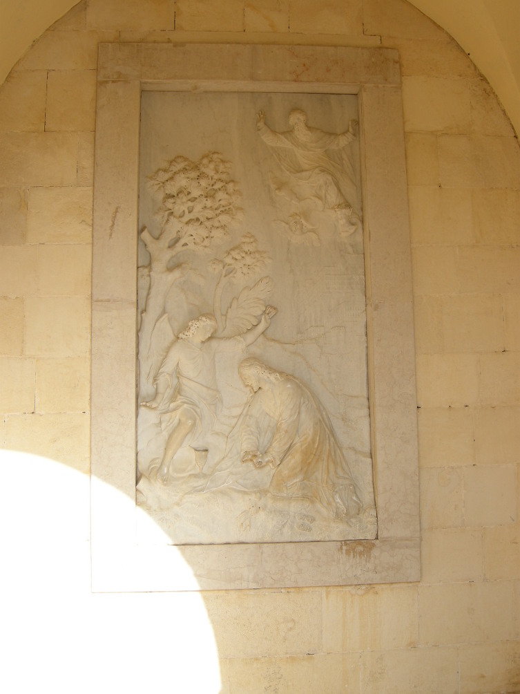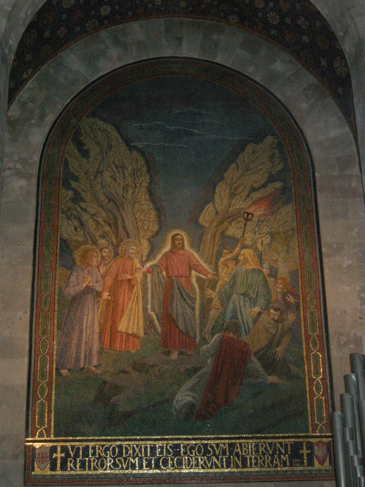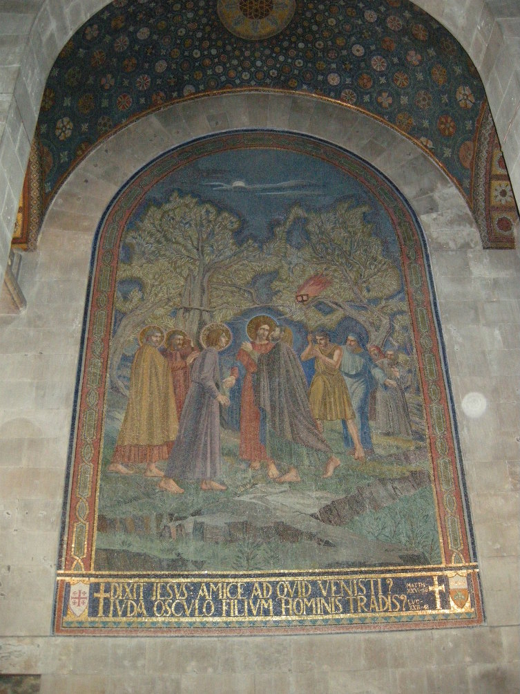겟세마네 동산 교회, 겟세마네 동산에서 기도하시는 예수님의 모습이 그려져 있다.