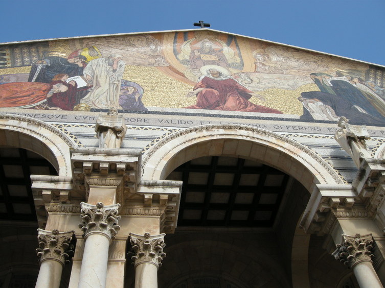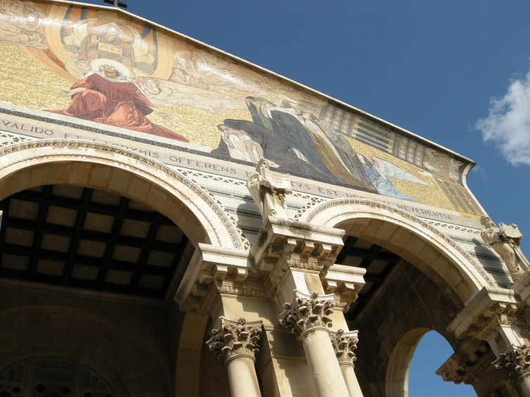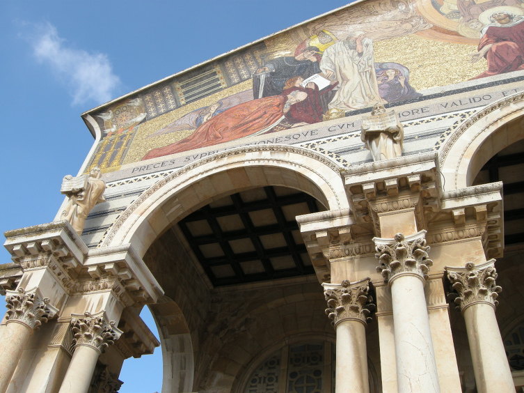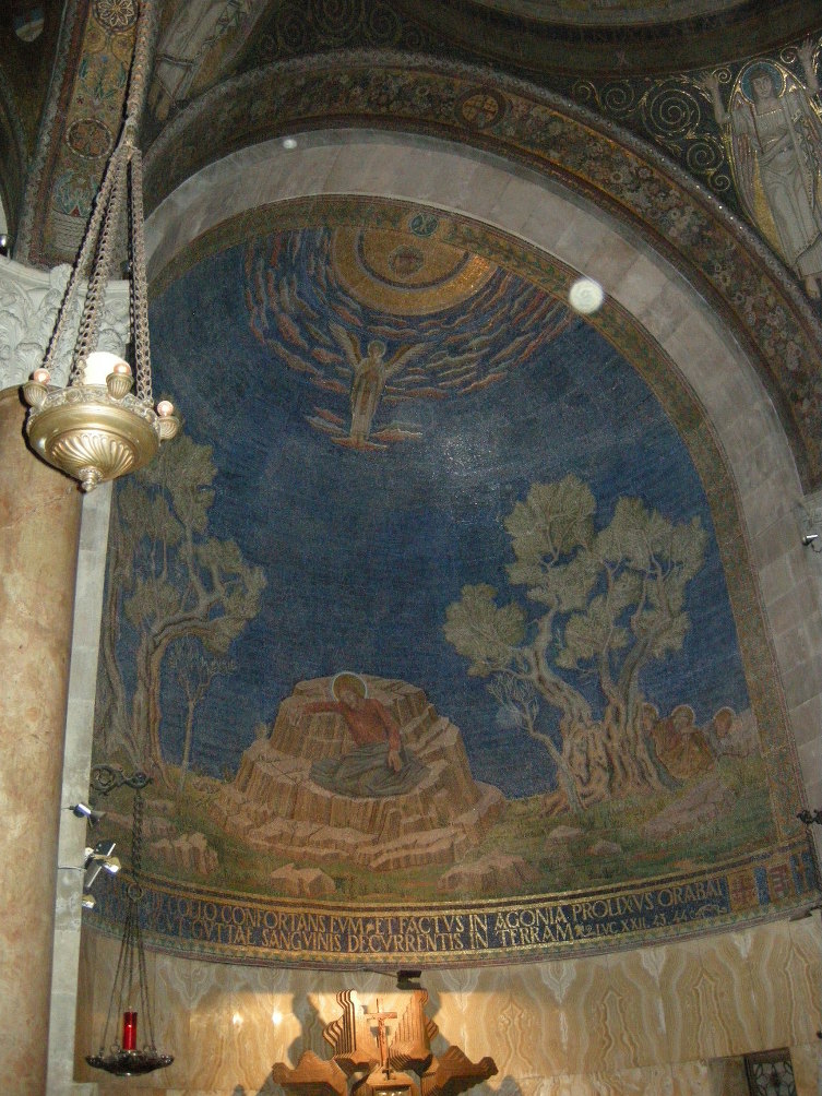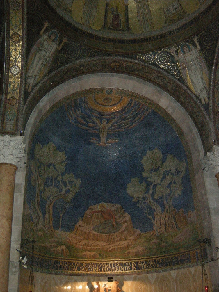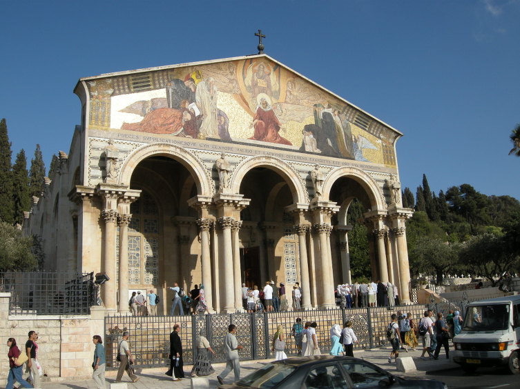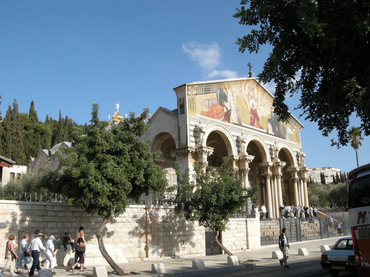 겟세마네 동산 교회는 구 예루살렘의 동쪽에서 대략 400m 떨어진, 키드론 골짜기 건너(요한 18,1) 올리브 산 서쪽 아래에 베타니아쪽(예리고 방향)의 길가에 면해 있다. 복음서에서 “겟세마니”,라는 지명은 마태오복음(26,36)과 마르코 복음(14,32)에서 직접 언급하고 있으며, ‘기름틀’, ‘착유기’라는 뜻을 가진 올리브와 관련된 히브리어 ‘갇세마님’의 희랍어식 발음이다. 세례 요한은 이곳을 기드론 시내 근처의 동산이라 했다. 예수께서 나가사 습관을 좇아 감람산에 이르러 기도하신 곳이다(눅 22:39). 십자가 지시기 전날 밤 이곳을 찾으신 예수님은 “아버지여 만일 아버지의 뜻이어든 이 잔을 내게서 옮기시옵소서 그러나 내 원대로 마옵시고 아버지의 원대로 되기를 원하나이다”(눅 22:42) 기도하셨다. 가룟 유다가 대제사장의 하인들과 와서 배반하였다.(마 26:7, 막 14:44, 눅 22:47, 요 18:2). 모든 제자들은 도망가고 예수님은 홀로 남아 목자를 치면 양이 흩어지려니와(슥 13:7)의 예언이 이루어졌다. 예수는 체포되고 가야바의 집으로 끌려가 그 다음날 십자가의 형을 선고 받았다.