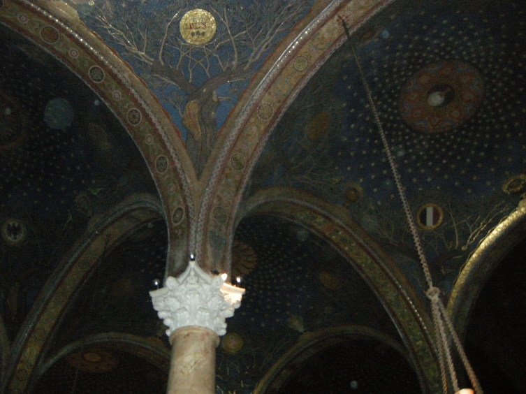 돔 천장, 교회의 천정에 그 여러 나라의 표지가 새겨져 있다.