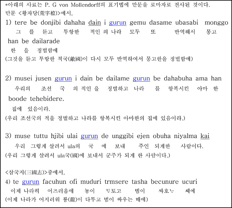 몽고도 gurun이 될 수 있으며, 청(淸)도 gurun이 될 수 있으며, 명(明)도 gurun이