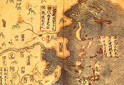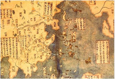 그런데 천하제번식공도天下諸番識貢圖는 명나라 3대 황제인 성조成祖 대에 조정에 바친 지도이다. 성조의 연호인 영락永樂16년이란 지도상의 설명이 그것을 알리고 있다. 그렇다면 위 지도제작자는 당시 명나라에서 활동하고 있었다는 얘기가 된다.