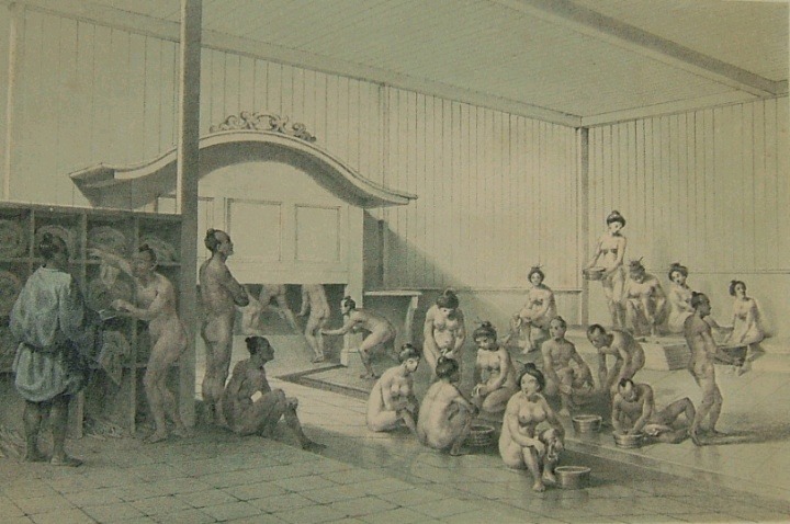 (註) 에도바쿠후(江戸幕府) 시대의 '남녀 혼탕'의 모습이다. 이런 풍습이 언제 모두 사라졌는지?
