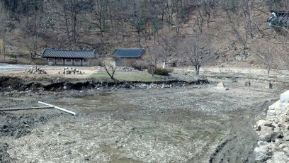 사진이 원래 연못이 있던 자리였는데 지금은 보수 공사 때문에 물을 없앤 모습이다. 조선 태조 5년 나한전을 제외