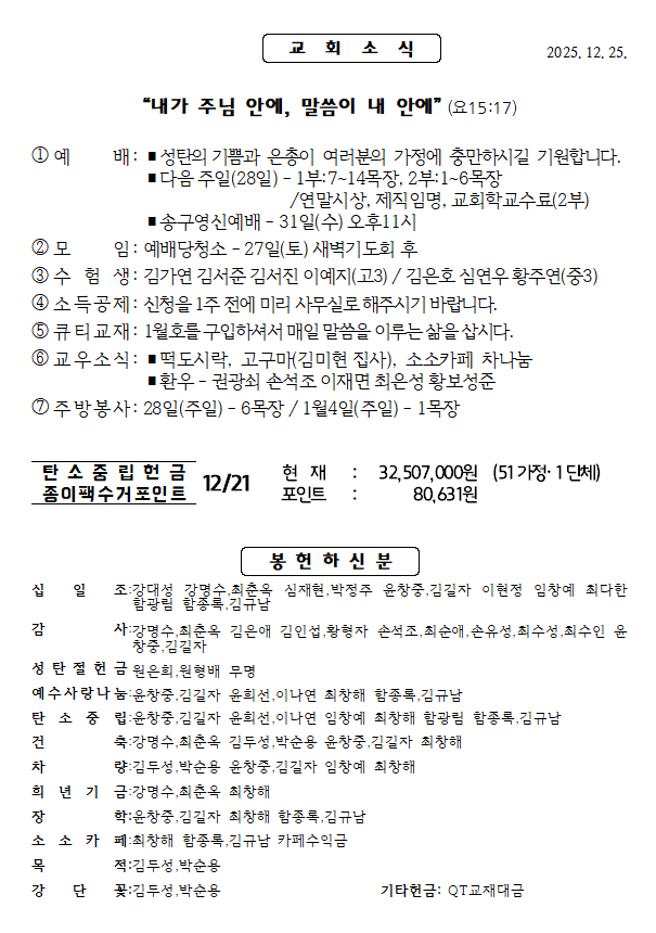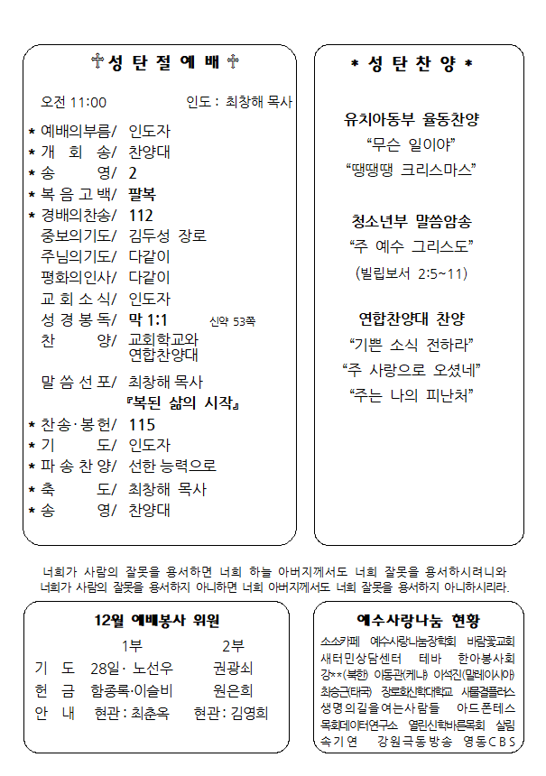2025년 12월 25일 성탄절 주보 작성자구본우|작성시간25.12.25|조회수4 목록 댓글 0 글자크기 작게가 글자크기 크게가 j251225성탄절001.png577.22KBj251225성탄절002.png42.99KBj251225성탄절003.png45.69KBj251225성탄절004.png61.92KB 첨부파일첨부된 파일이 8개 있습니다. png 파일 j251225성탄절002.png 다운로드 png 파일 j251225성탄절003.png 다운로드 png 파일 j251225성탄절004.png 다운로드 png 파일 j251225성탄절001.png 다운로드 png 파일 j251225성탄절002.png 다운로드 png 파일 j251225성탄절003.png 다운로드 png 파일 j251225성탄절001.png 다운로드 png 파일 j251225성탄절004.png 다운로드 다음검색 현재 게시글 추가 기능 열기 북마크 공유하기 신고 센터로 신고 댓글 댓글 0 댓글쓰기 답글쓰기 댓글 리스트
