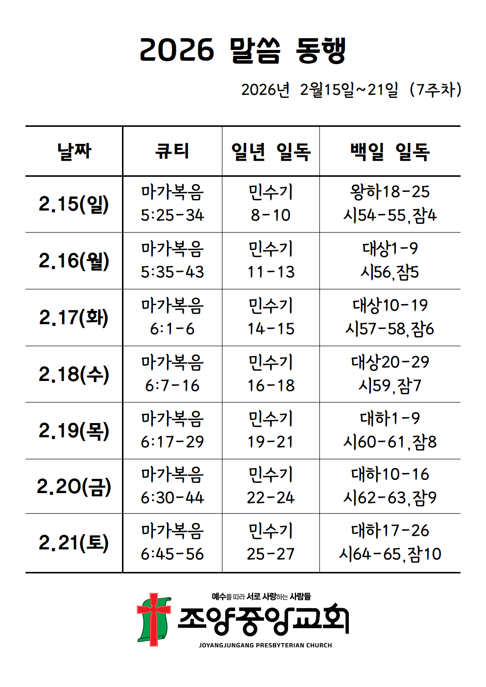 2026년 2월15일 주간성경공부 26-7 작성자구본우|작성시간26.02.14|조회수2 목록 댓글 0 글자크기 작게가 글자크기 크게가 말씀동행7.png94.95KB 첨부파일첨부된 파일이 2개 있습니다. png 파일 말씀동행7.png 다운로드 png 파일 말씀동행7.png 다운로드 다음검색 현재 게시글 추가 기능 열기 북마크 공유하기 신고 센터로 신고 댓글 댓글 0 댓글쓰기 답글쓰기 댓글 리스트