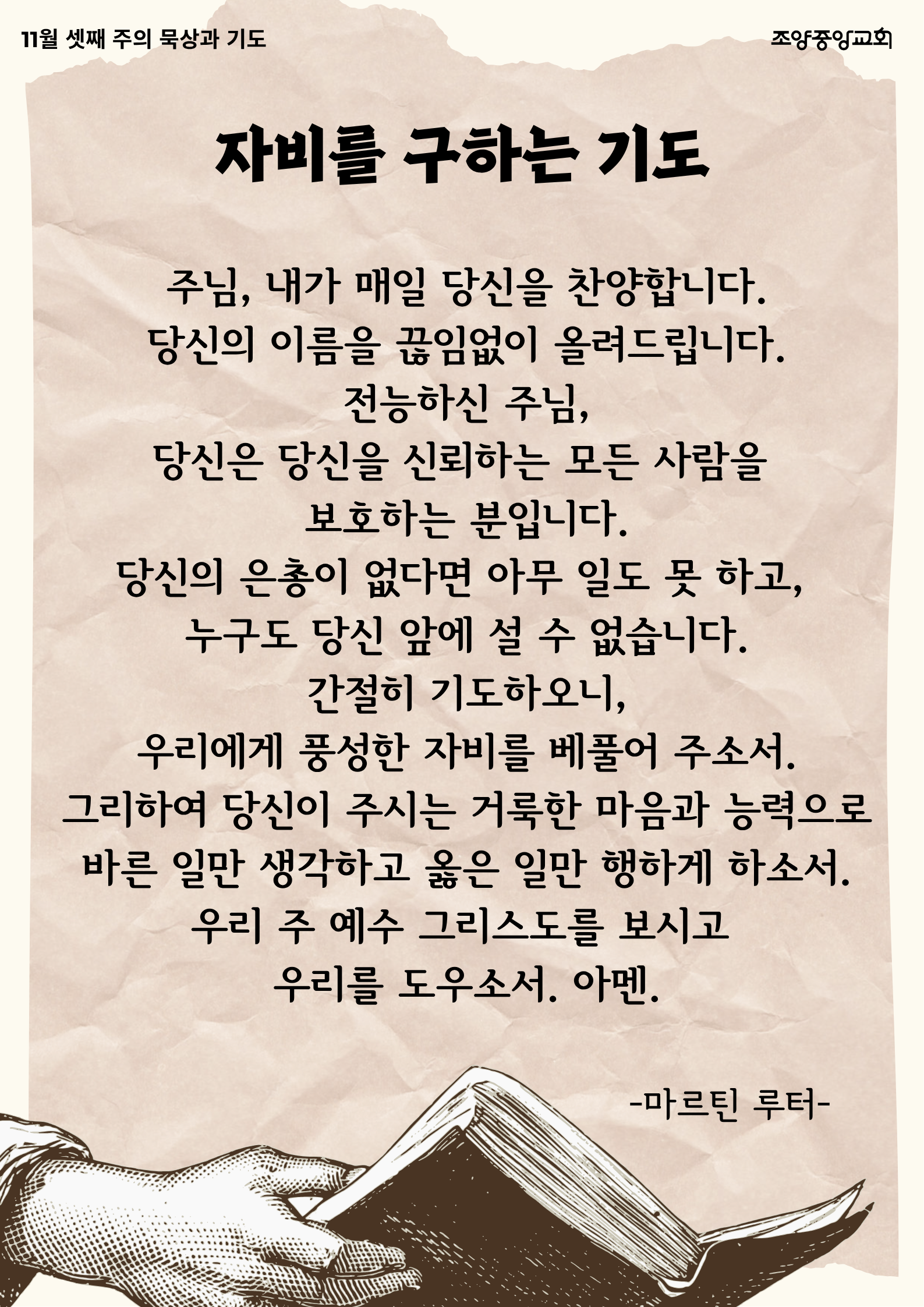 2025년 11월 16일 "자비를 구하는 기도" 작성자구본우|작성시간25.11.15|조회수3 목록 댓글 0 글자크기 작게가 글자크기 크게가 금주의기도.png2.99MB 첨부파일첨부된 파일이 2개 있습니다. png 파일 금주의기도.png 다운로드 png 파일 금주의기도.png 다운로드 다음검색 현재 게시글 추가 기능 열기 북마크 공유하기 신고 센터로 신고 댓글 댓글 0 댓글쓰기 답글쓰기 댓글 리스트