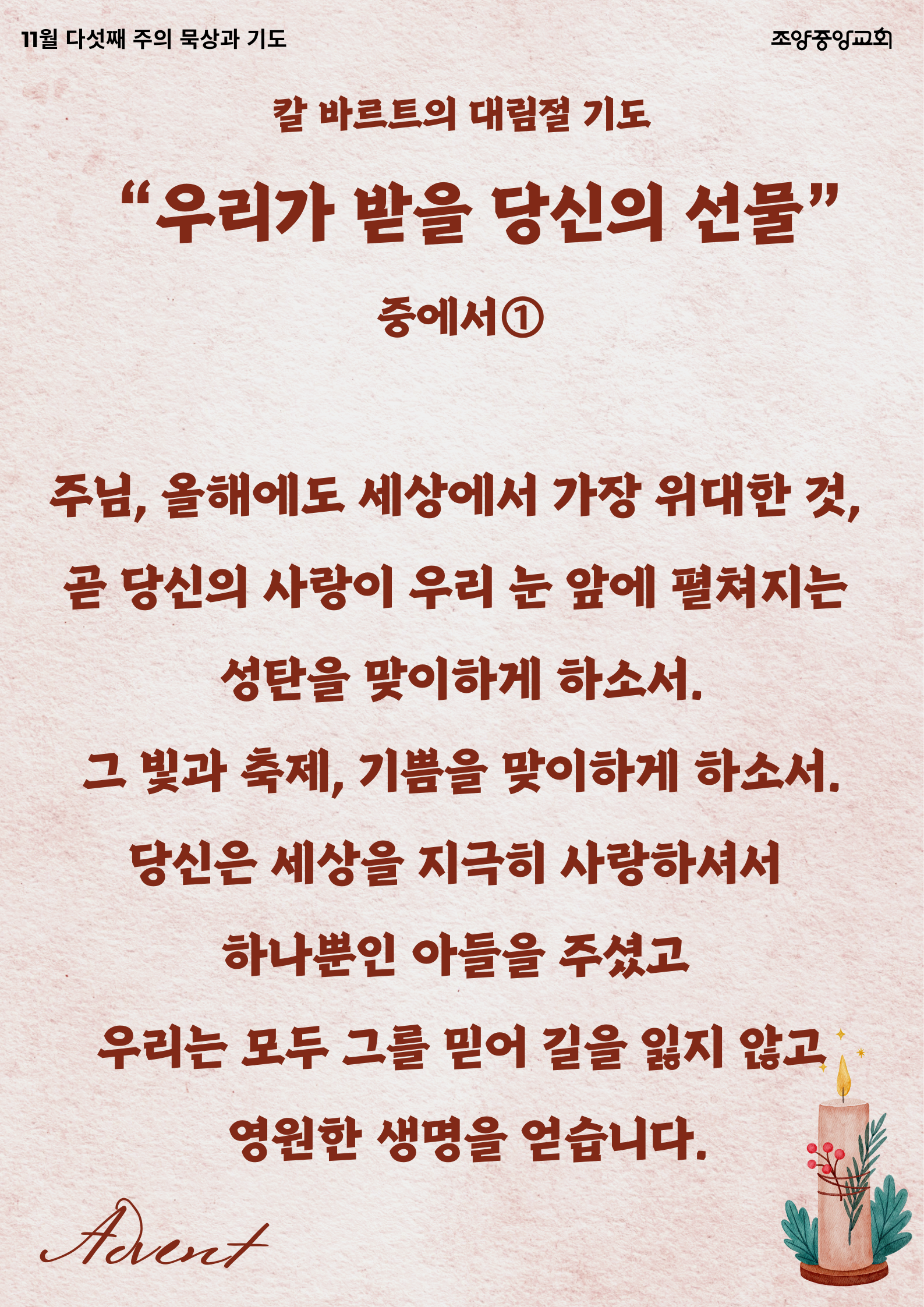2025년 11월 30일 "우리가 받을 당신의 선물" #1 작성자구본우|작성시간25.11.29|조회수3 목록 댓글 0 글자크기 작게가 글자크기 크게가 2025대림절기도 (1).png4.03MB 첨부파일첨부된 파일이 2개 있습니다. png 파일 2025대림절기도 (1).png 다운로드 png 파일 2025대림절기도 (1).png 다운로드 다음검색 현재 게시글 추가 기능 열기 북마크 공유하기 신고 센터로 신고 댓글 댓글 0 댓글쓰기 답글쓰기 댓글 리스트