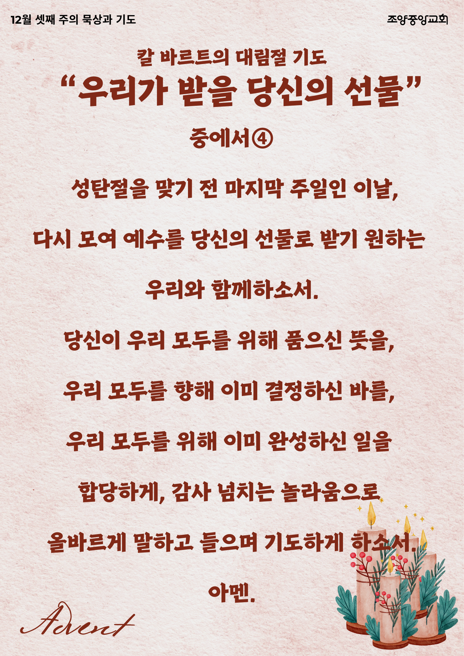 2025년 12월 21일 "우리가 받을 당신의 선물" #4 작성자구본우|작성시간25.12.20|조회수6 목록 댓글 0 글자크기 작게가 글자크기 크게가 2025대림절기도 (4).png4.13MB 첨부파일첨부된 파일이 2개 있습니다. png 파일 2025대림절기도 (4).png 다운로드 png 파일 2025대림절기도 (4).png 다운로드 다음검색 현재 게시글 추가 기능 열기 북마크 공유하기 신고 센터로 신고 댓글 댓글 0 댓글쓰기 답글쓰기 댓글 리스트