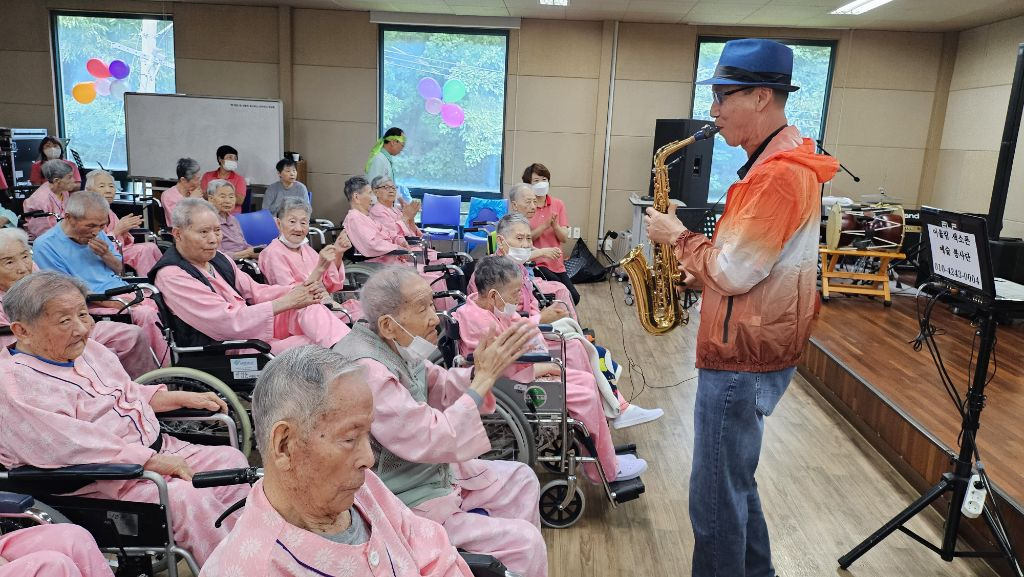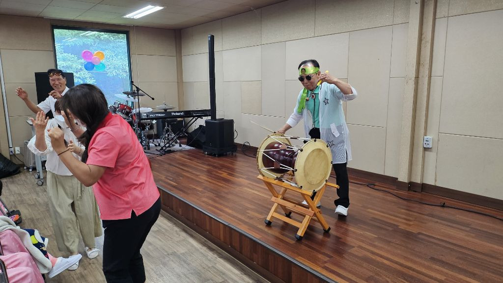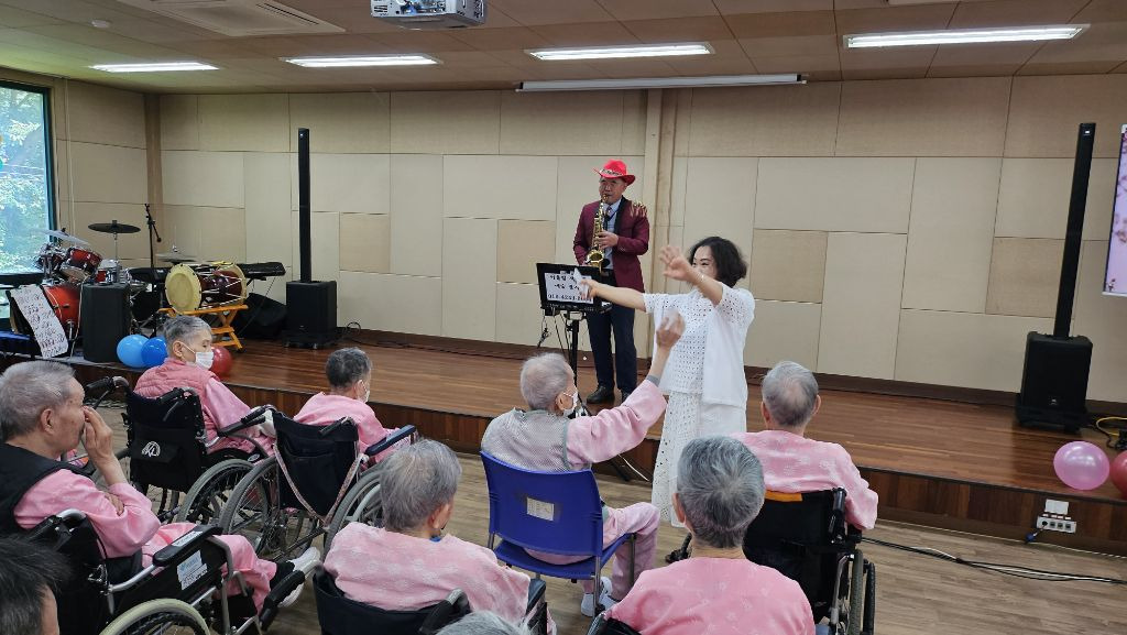 날씨에 구성산 아래 평안의집에서 어르신및 관계자님들 모시고 다양한 프로그램으로 90분간 재능기부 했습니다.