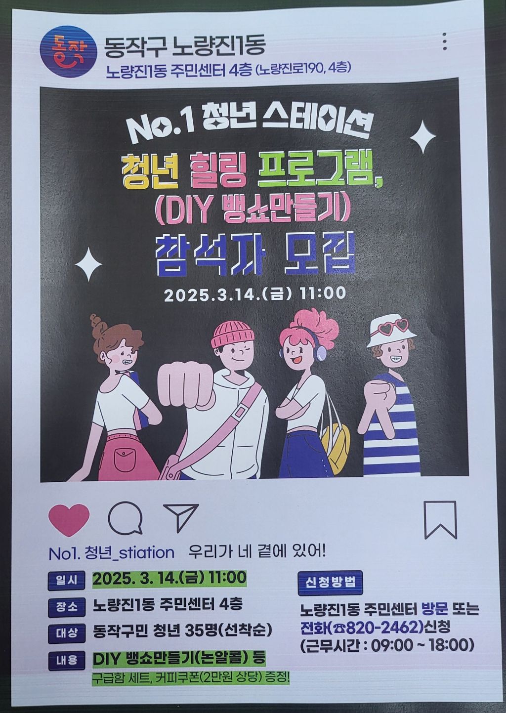 청년힐링프로그램참석자모임(서울시동작구노량진1동) 작성자채한태 법학박사|작성시간25.03.11|조회수61 목록 댓글 0 글자크기 작게가 글자크기 크게가 안녕하세요. 반갑습니다. 청년여러분의 많은 관심을 기대합니다. 꿈을 이루시기 바랍니다. 다음검색 현재 게시글 추가 기능 열기 북마크 공유하기 신고 센터로 신고 댓글 댓글 0 댓글쓰기 답글쓰기 댓글 리스트