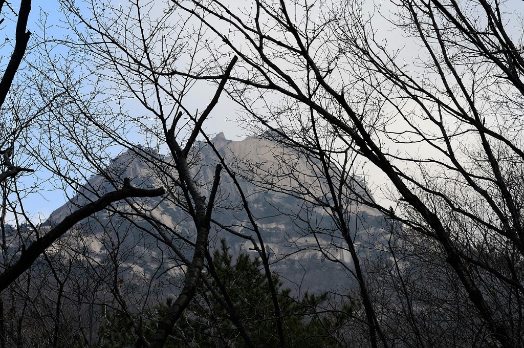 언덕길을 걸으며 마치 북한산이 시야에 들어 오는데 병풍을 둘른듯