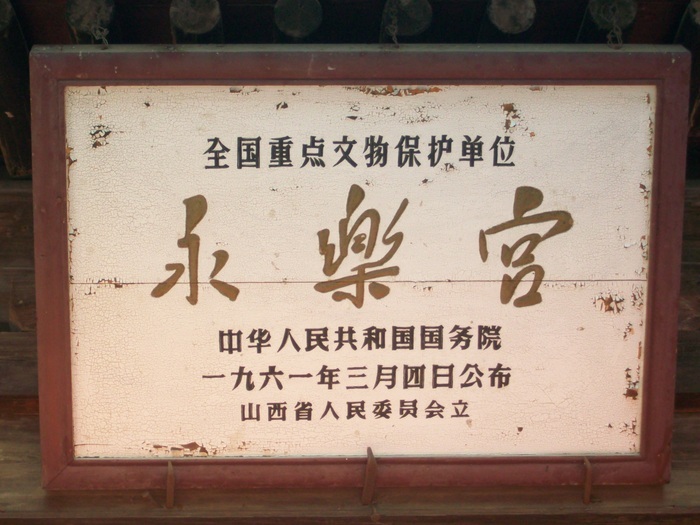 영락진은 한나라 때는 포판현(蒲坂縣), 당나라 때 영락현(永樂縣)이라고 한다. 이후 북송 때 현재의 지명으로 아직도 그대로 전해지고 있다. 원나라 때 영락궁을 처음 세웠다고 공식적으로 발표해 놓고, 영락현이란 이름은 당나라 때의 것이고 북송 때 현재의 지명이라는 등 앞.뒤가 전혀 안맞는 이야기를 하고있는 것으로 보아 중국은 뭔가를 속이고 있는 것이 분명하다.