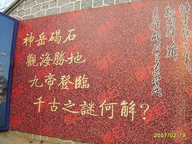 간단히 설명하자면, 갈석산에는 진시황, 한무제 유철, 위무제 조조, 당태종 이세민 등 중국 역대 9인의 황제가 등정한 명산으로, 특히 진시황이 구선(불로초)를 구하기 위해 서복을 떠나 보낸 곳이란 설명이다.