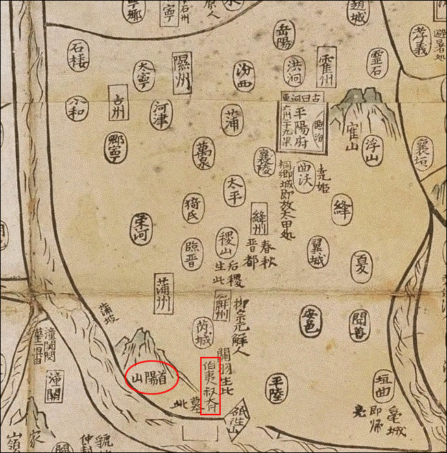 ▲ 고지도인 대청광여도에도 산서성 황하 굴곡 지점에 백이.숙제의 묘가 그려져 있다.